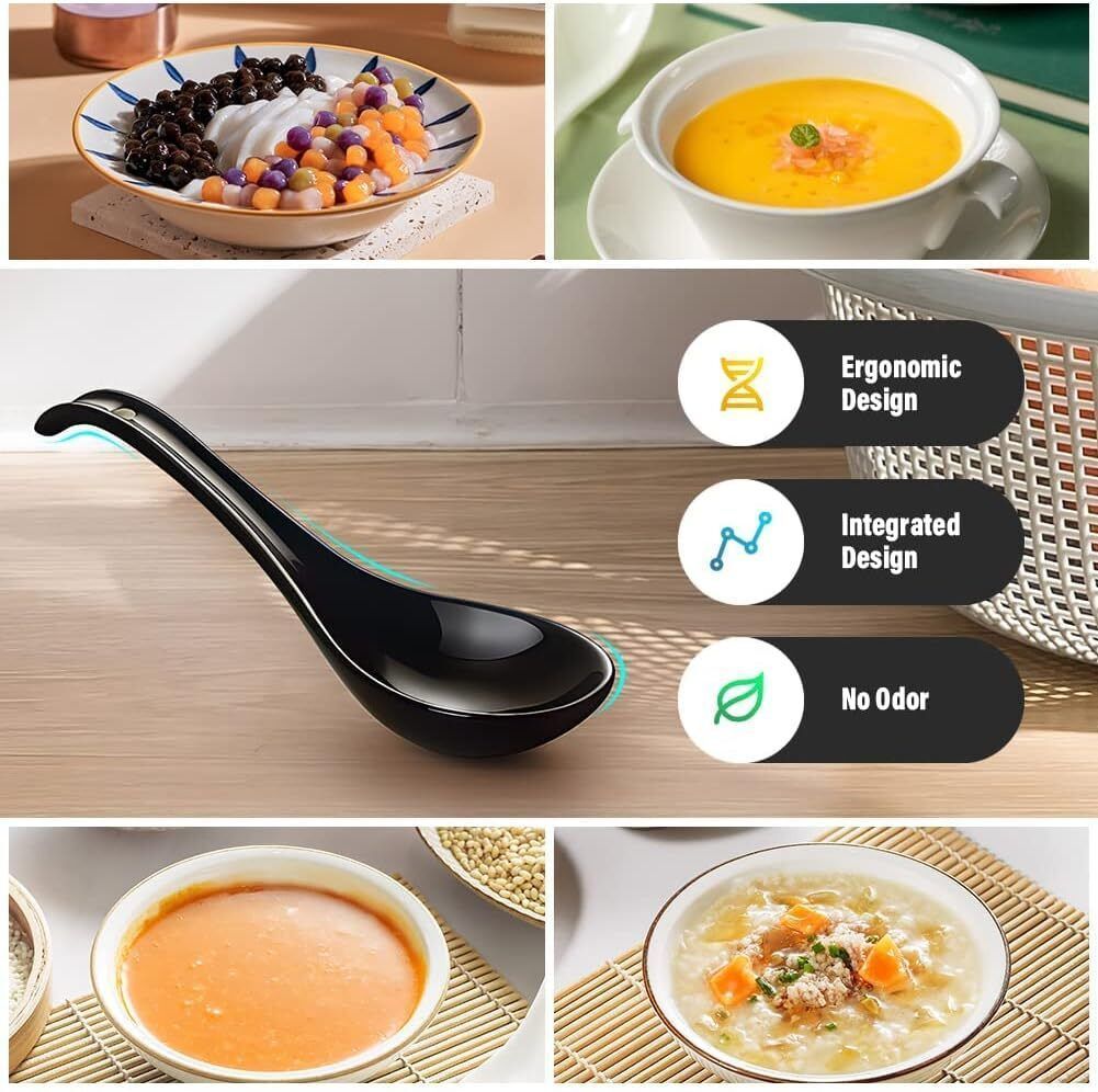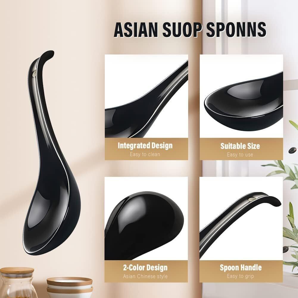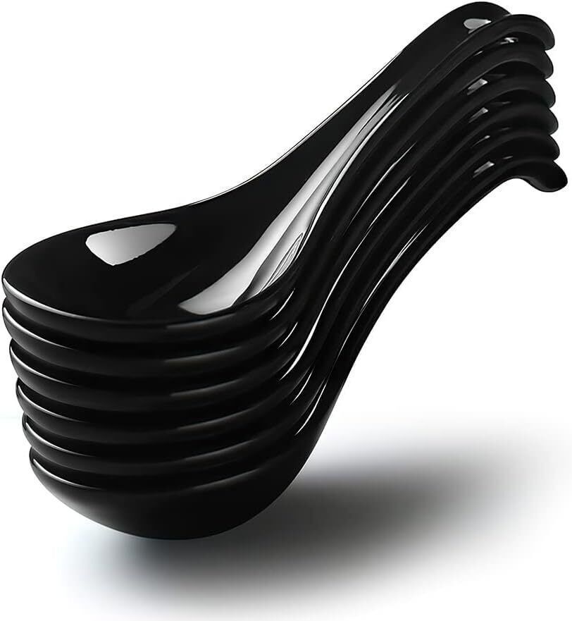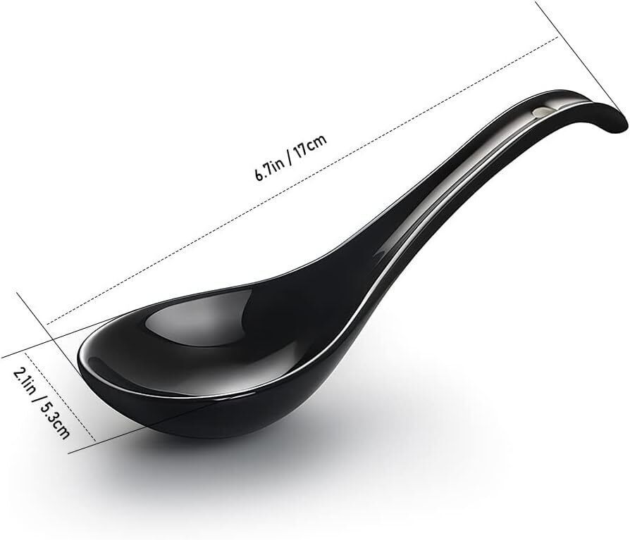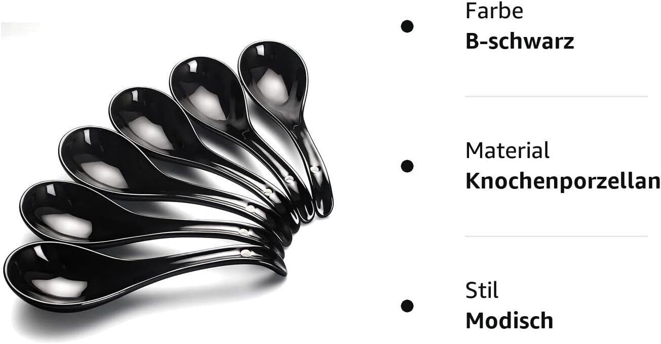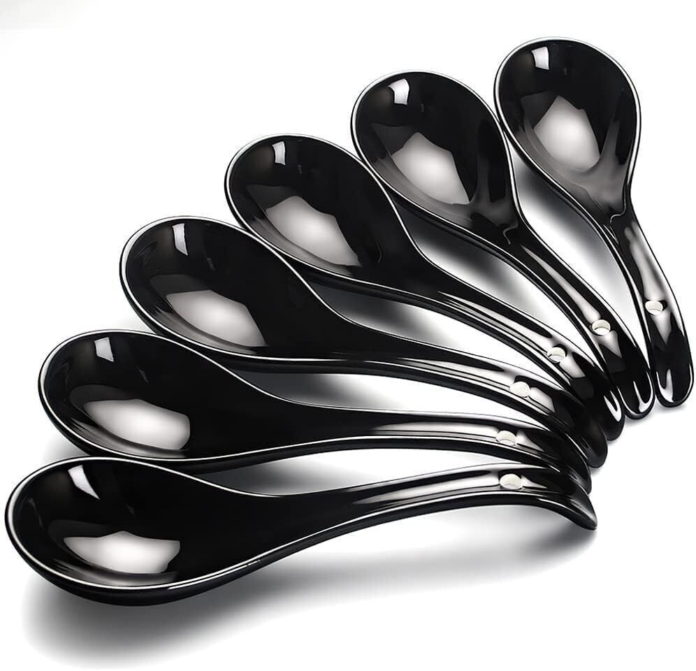 AOOSY Asiatische Japanischer Suppenlöffel Ramen Keramik Schwarz 17 cm 6er Set