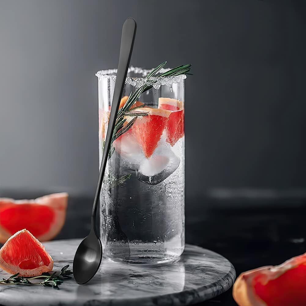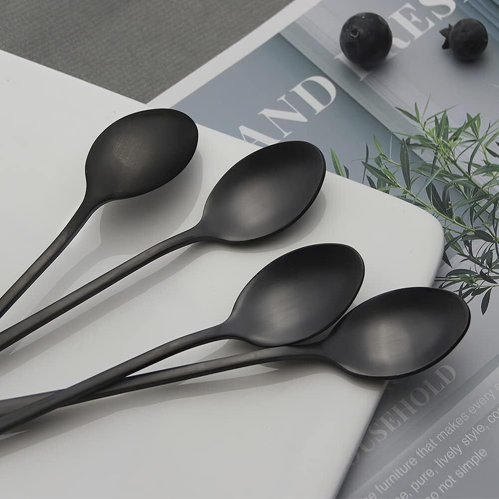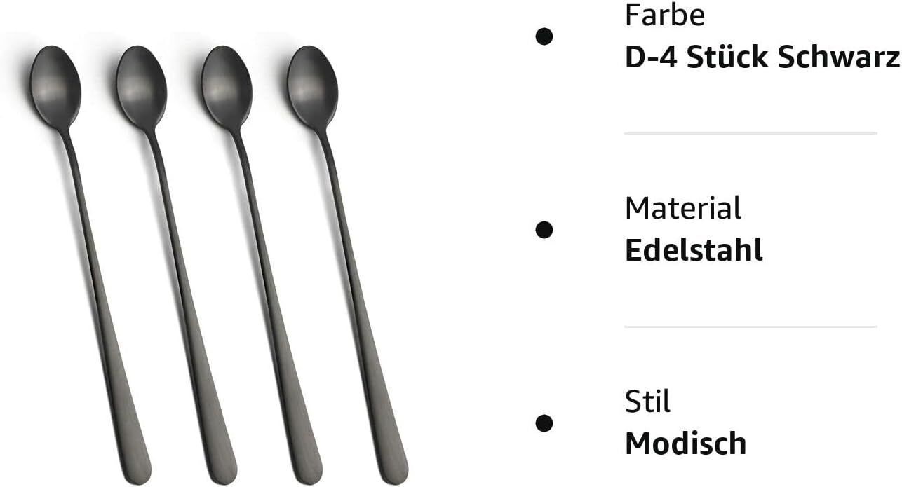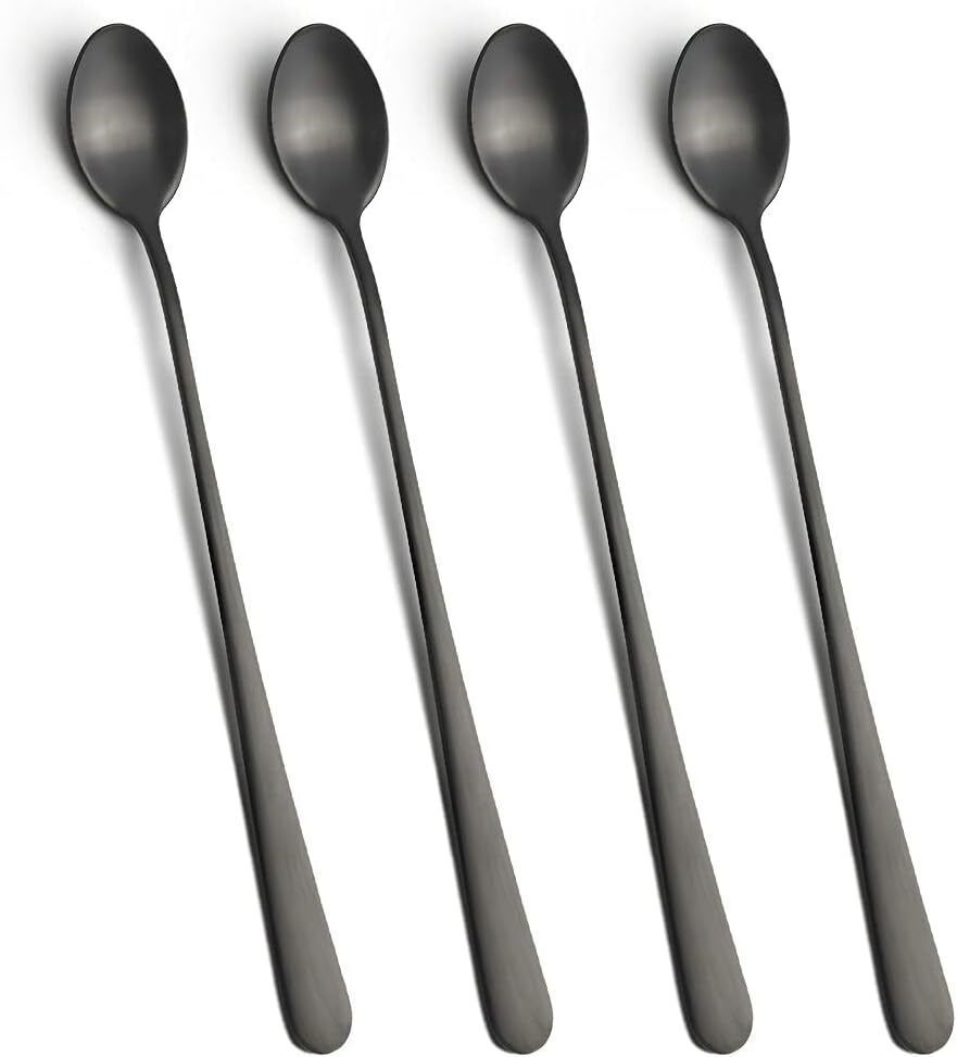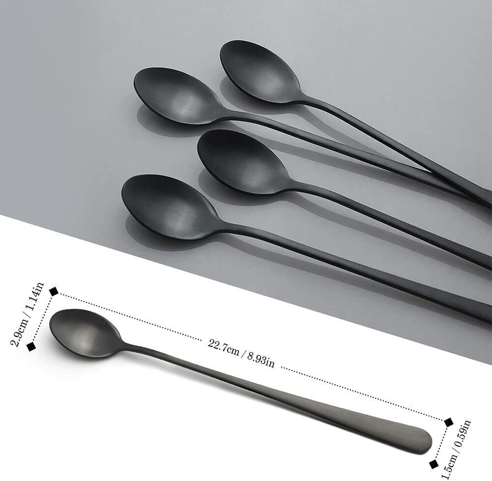 AOOSY Latte-Löffel 22,7cm Edelstahl langer Griff Réhrlöffel Schwarz 4 Stéck