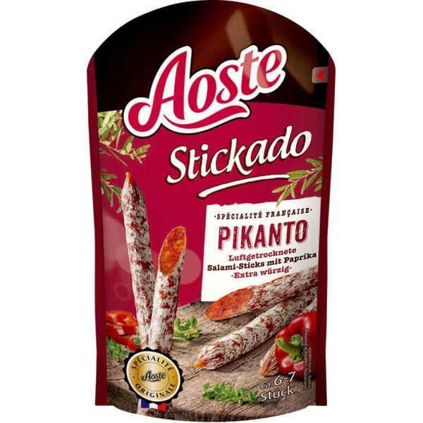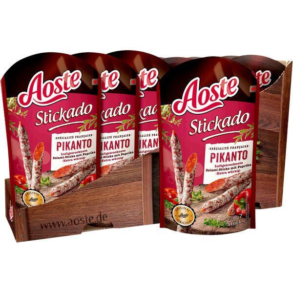 Aoste Stickado Pikanto 12 x 70g Beutel (scharfe Minisalamis)