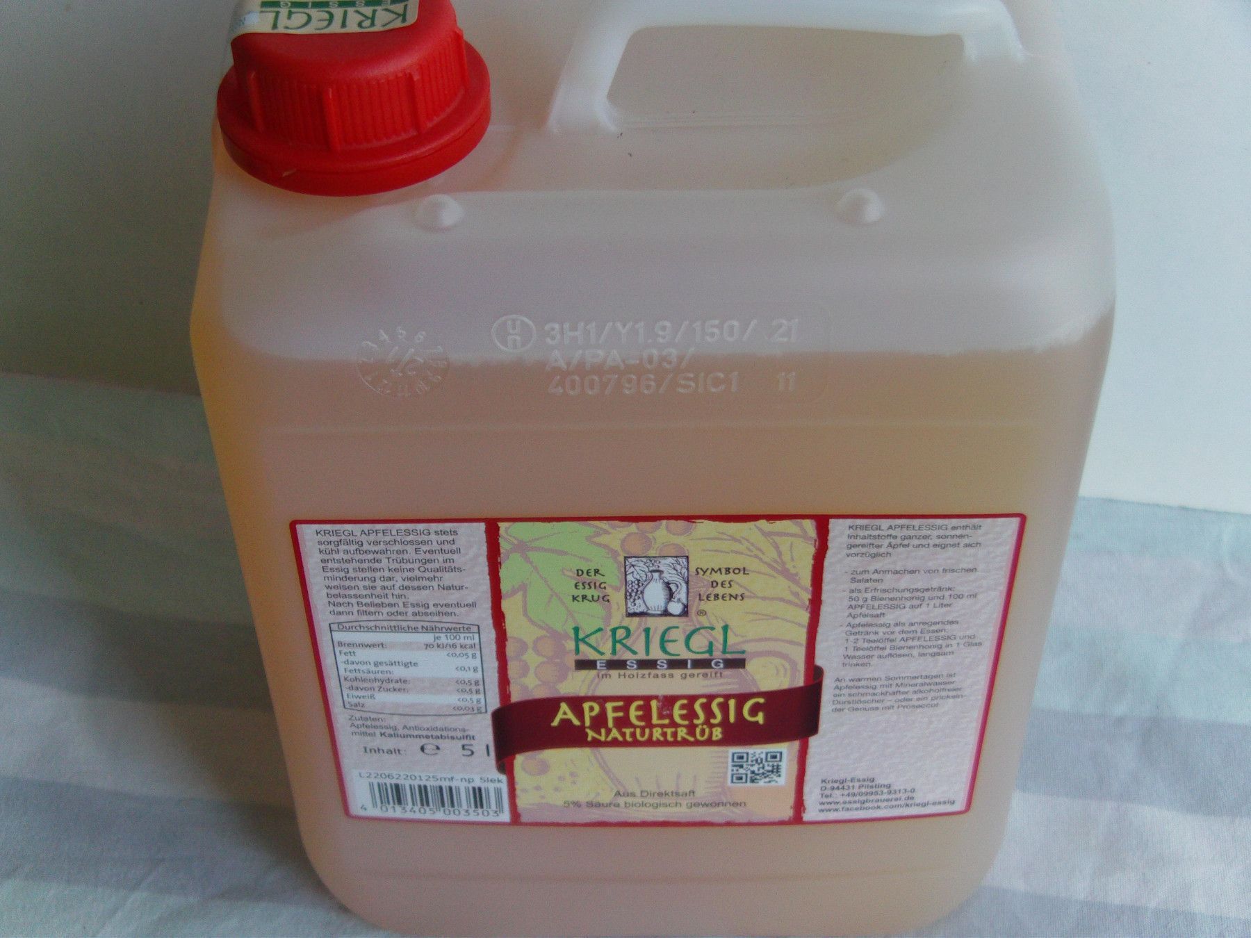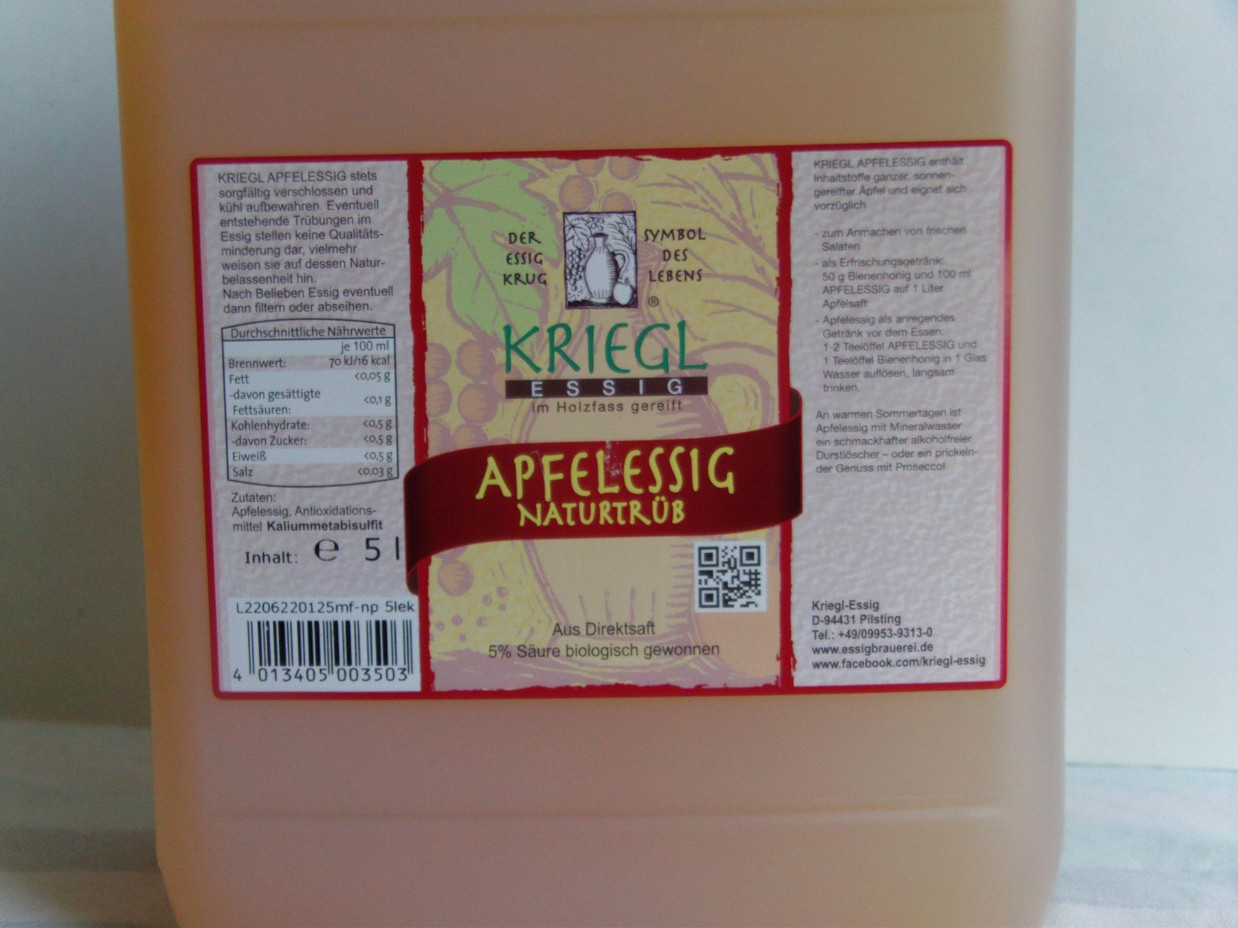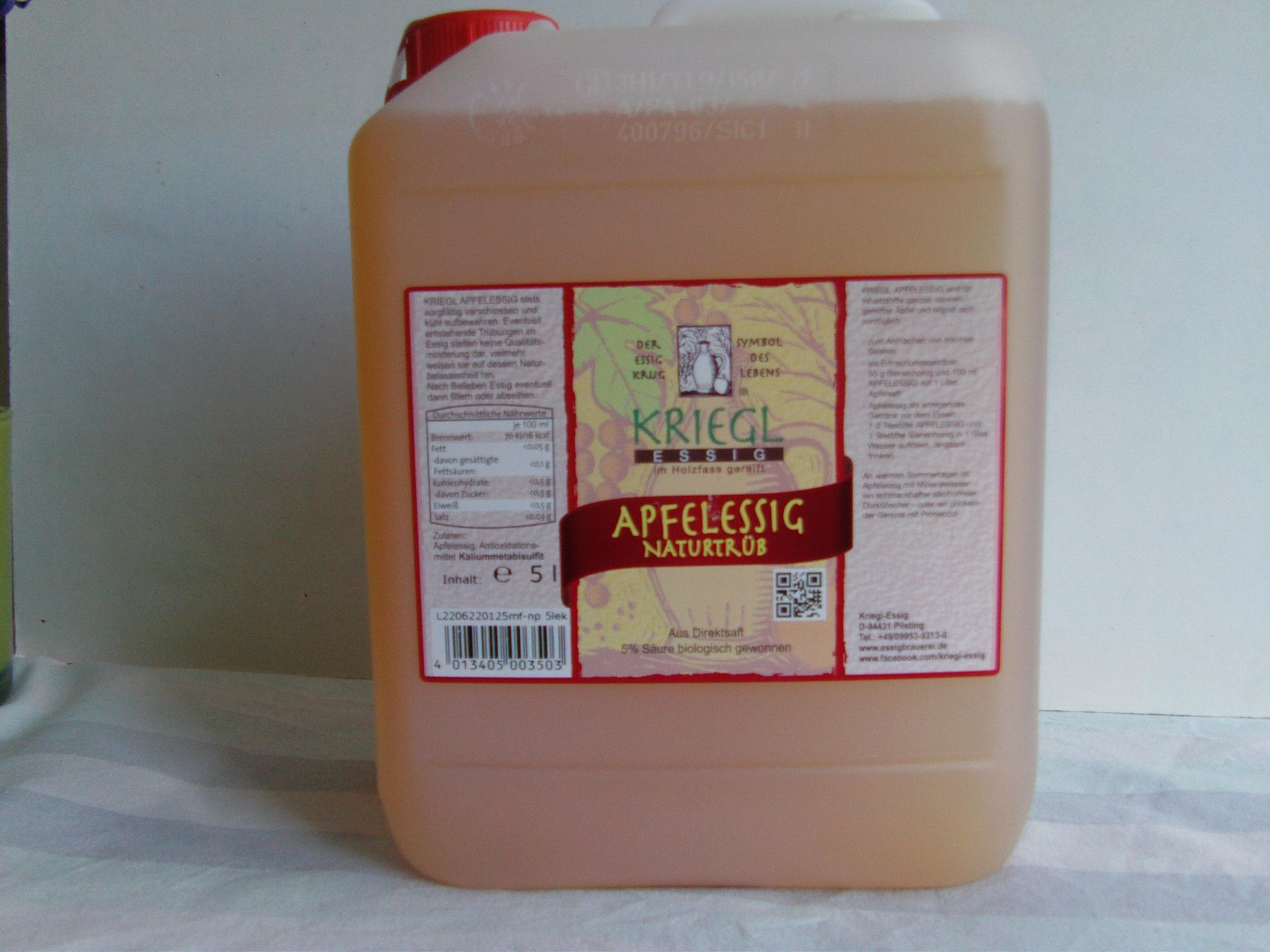 Apfelessig, Naturtrüb im Holzfass gereift, Kriegl Essigspezialität, 5 L Kanne