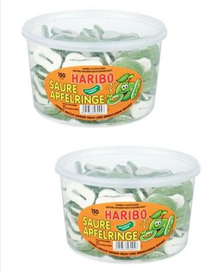 • 2 Dosen | HARIBO | Saure Apfelringe 150 Stück - 1,2 kg pro Dose
