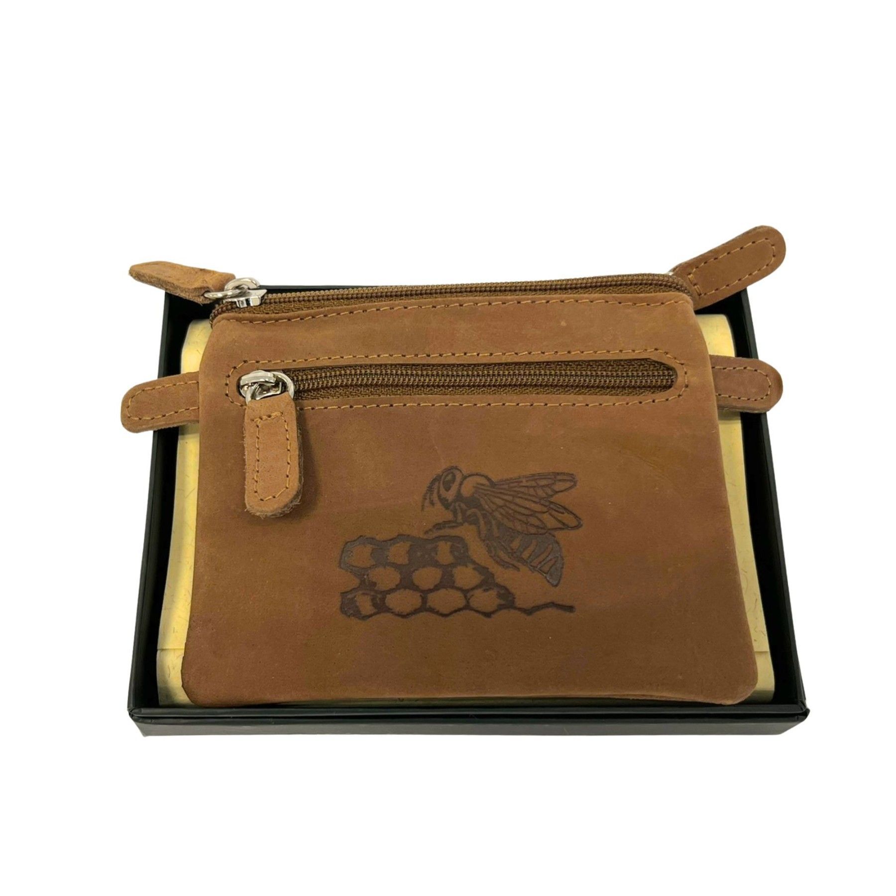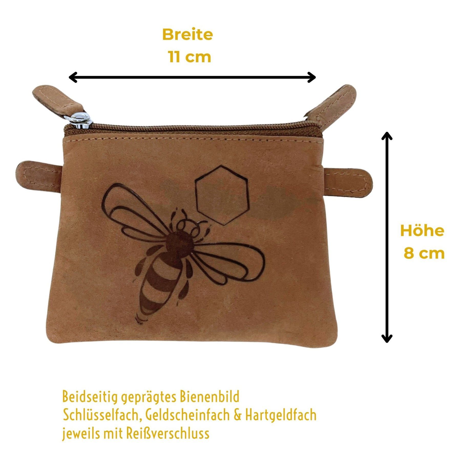 ApiSina® Geldbeutel aus Rindsleder mit Reissverschluss & Bienenbild