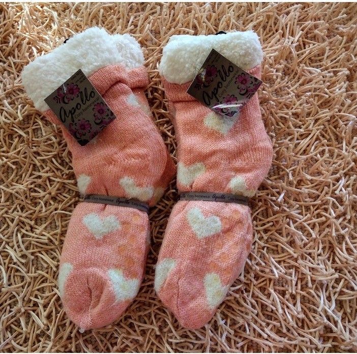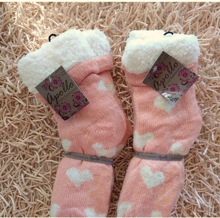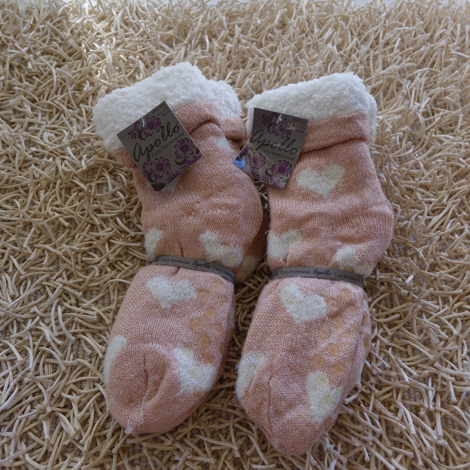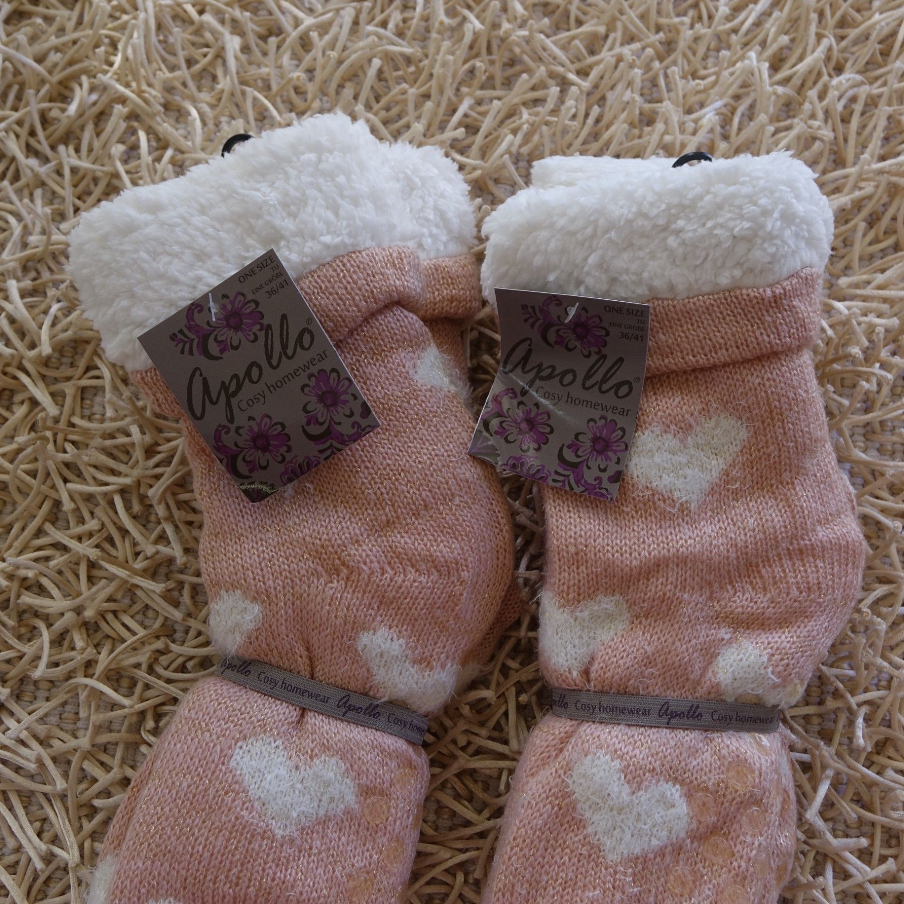 Apollo Apollo Cosy Homewear kuschelsocken Rosa mit Herzen Winter Dicke Warme Hüttensocken