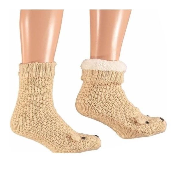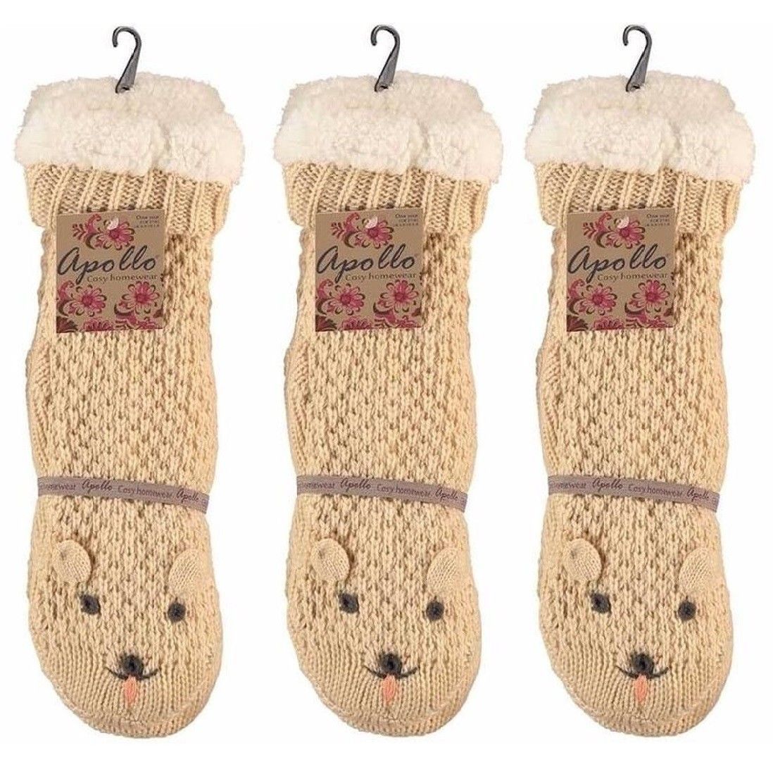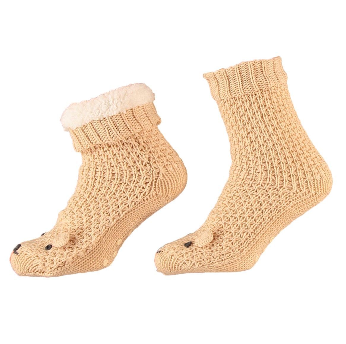 Apollo Apollo Cosy Homewear Socken kuschelsocken mit 3D Katz Beige Farbe unten rutschfest