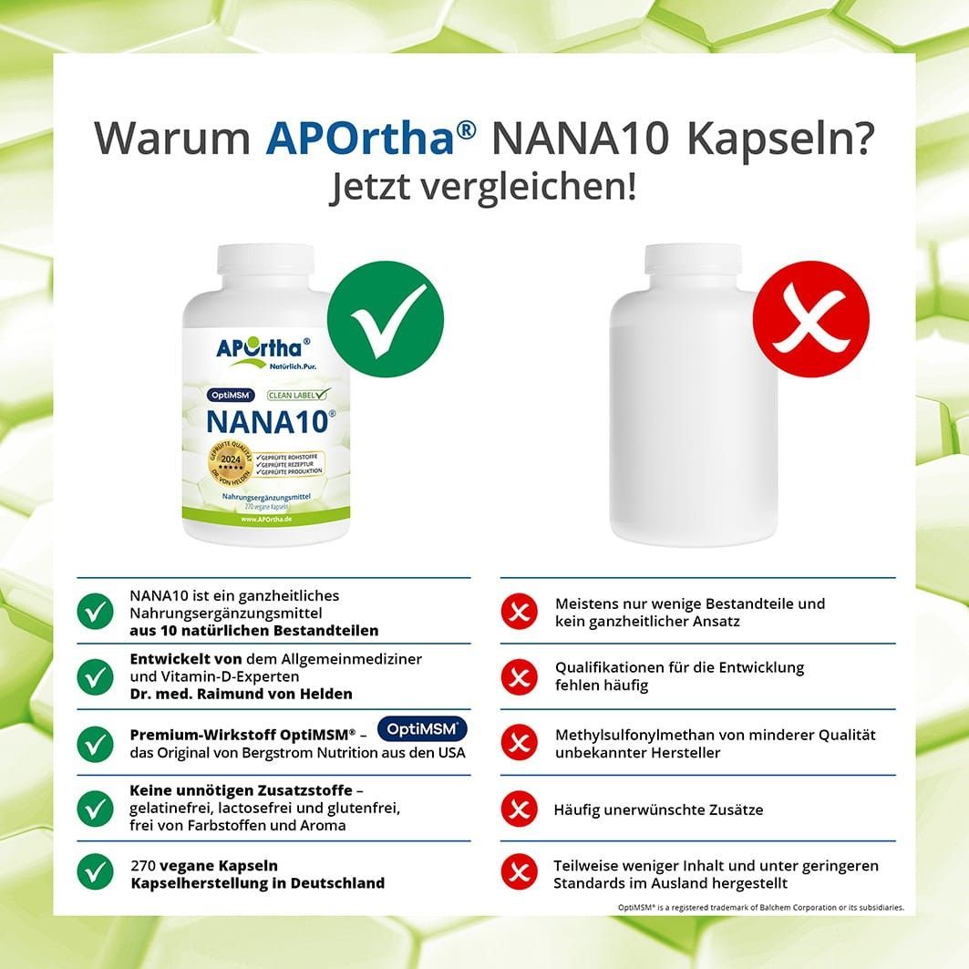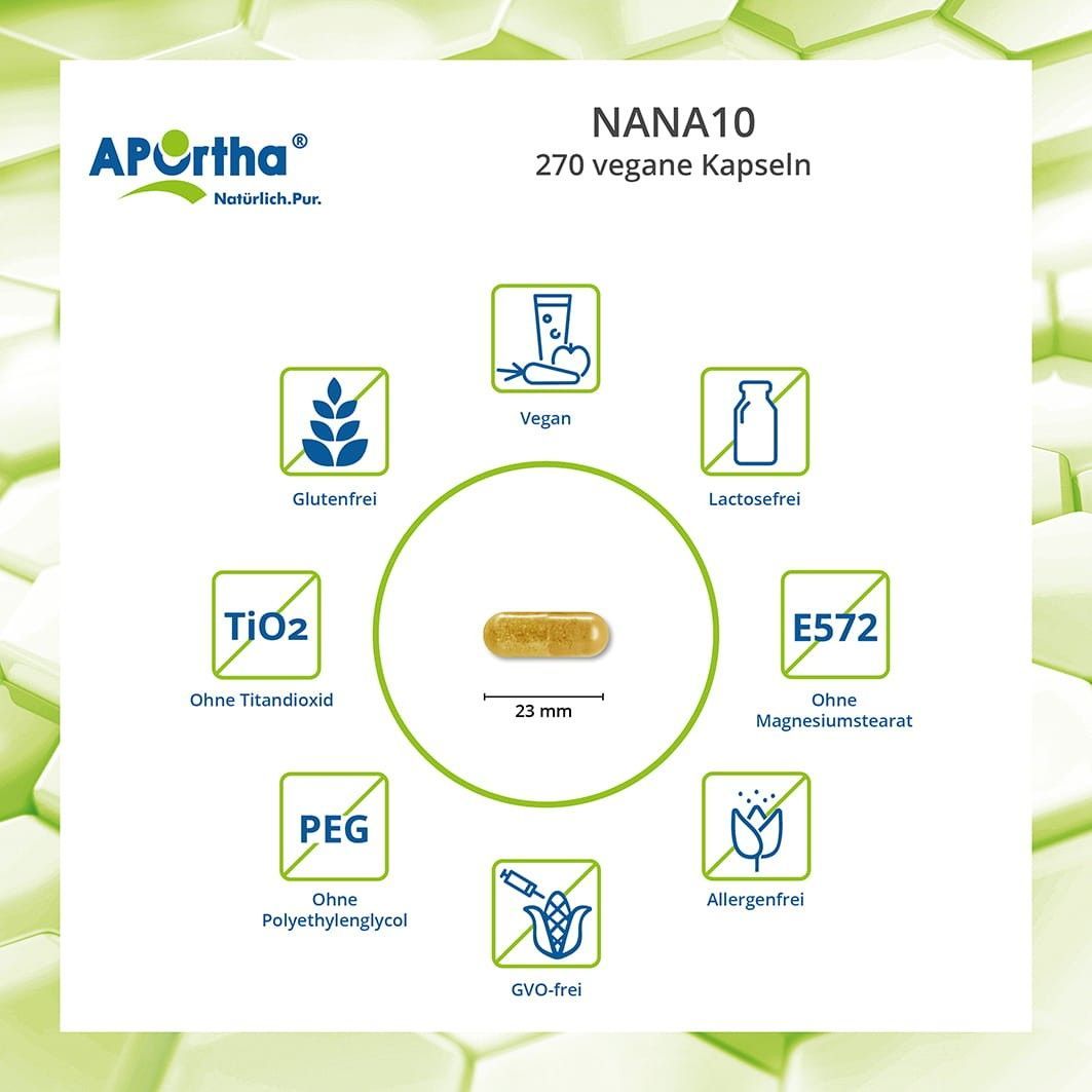 Aportha NANA10® - 270 Kapseln mit Aminosäuren, Vitamin C, Magnesium, MSM Inulin