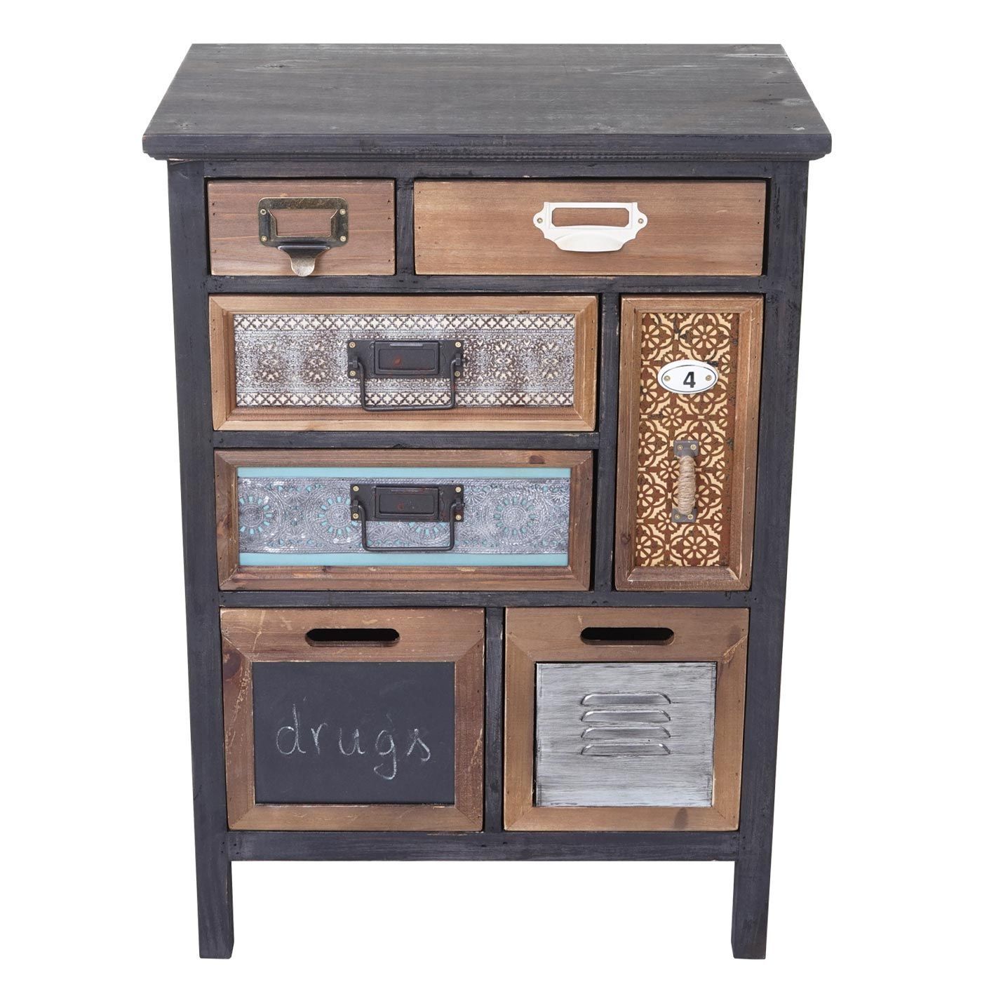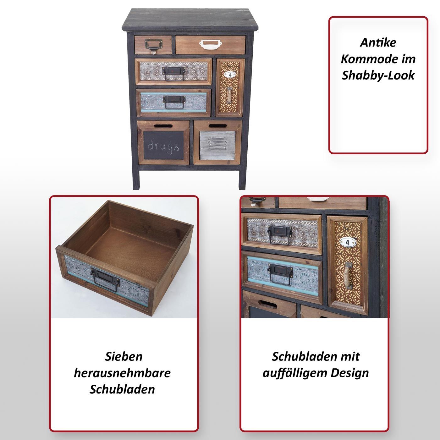 Mendler Apotheker-Schrank HWC-A43, Kommode, Tanne Holz massiv Vintage Patchwork 78x55x35cm
