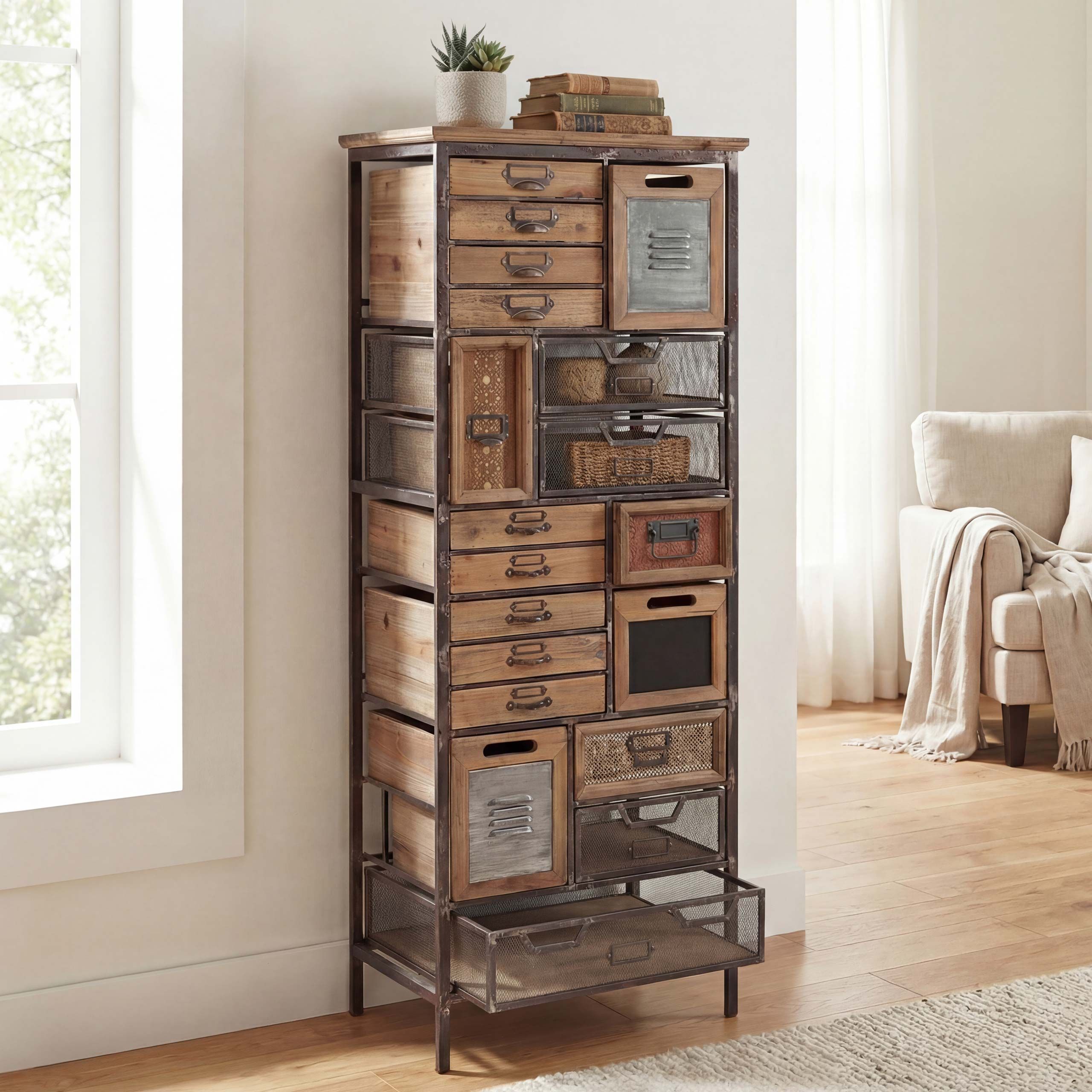 Mendler Apotheker-Schrank HWC-A43, Kommode, Tanne Holz massiv Vintage Shabby-Look 143x56x33cm