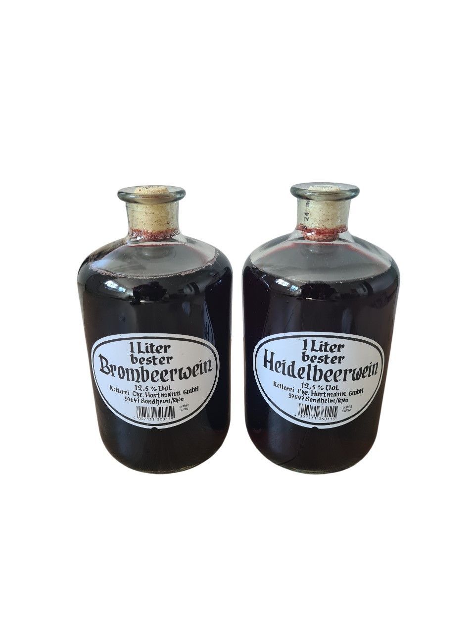 Apothekerflasche Fruchtwein Heidelbeerwein und Brombeerwein