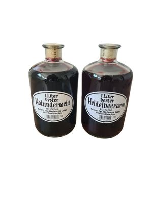 • Apothekerflasche Fruchtwein Holunderwein und Heildelbeerwein