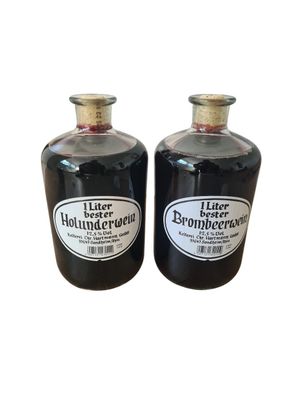 • Apothekerflasche Fruchtwein Holunderwein und Brombeerwein