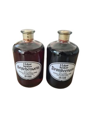 • Apothekerflasche Fruchtwein Schlehenwein und Brombeerwein