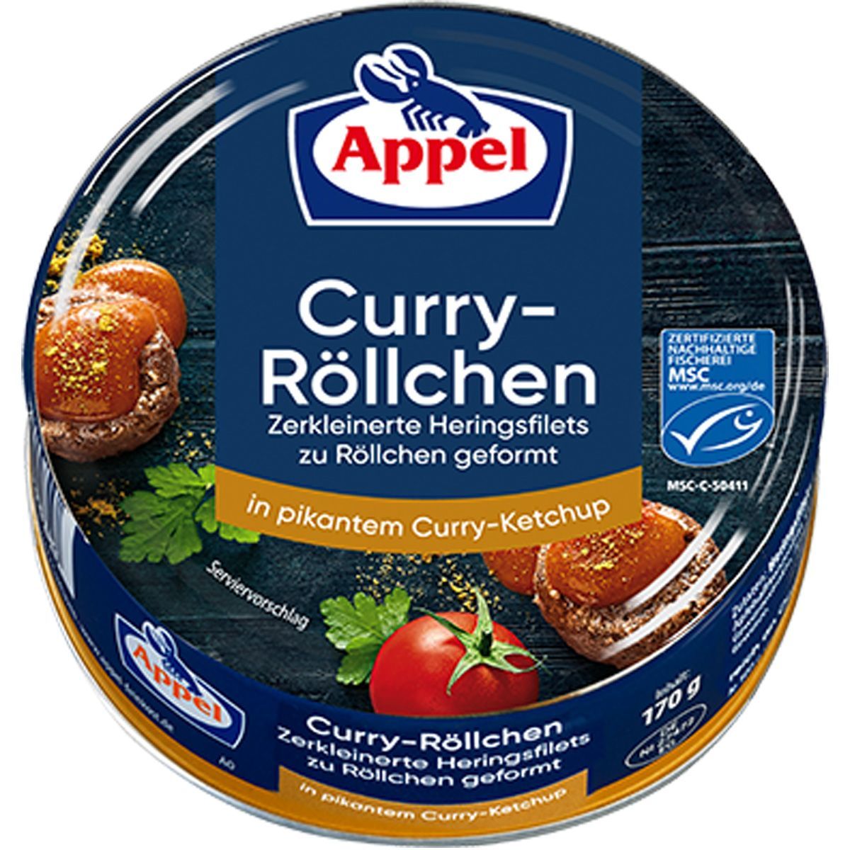 Appel Curry Röllchen Heringsfilets in pikantem Curry Ketchup 200g