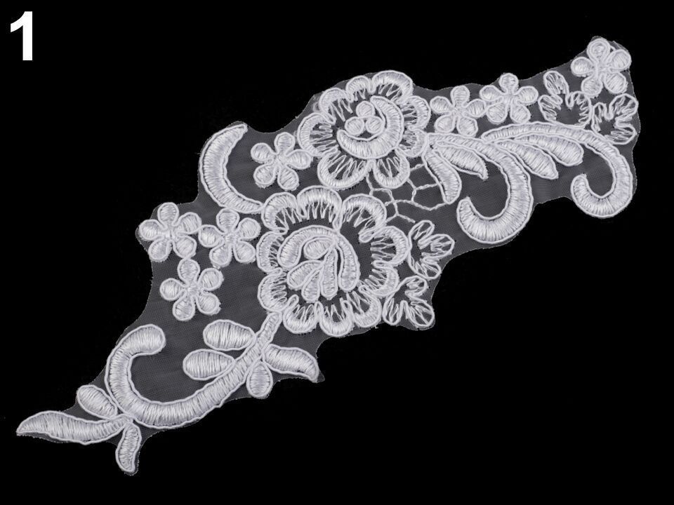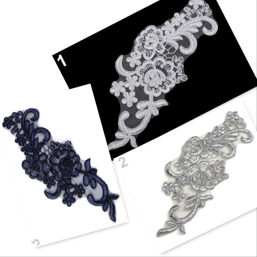 Applikation, Aufnäher, , Spitze, Burlesque, Hochzeit, Weiß, Blau, Grau