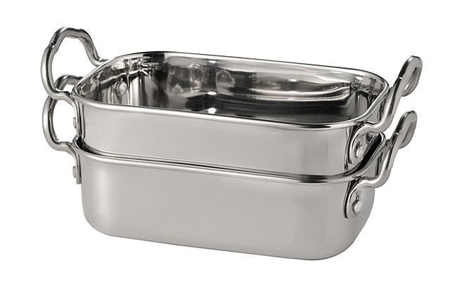 Snackhalter Servierpfanne 40660 Ausführung: 4 x Snackhalter im Servierpfannen-Design aus Edelstahl, poliert mit seitlichen Henkeln Höhe mit Henkel 65 mm ideal zum originellen Servieren von Snacks & Beilagen stapelbar spülmaschinenfest Abmessungen: (BxTxH): 145 x 95 x 45 mm