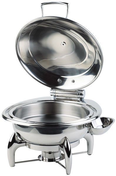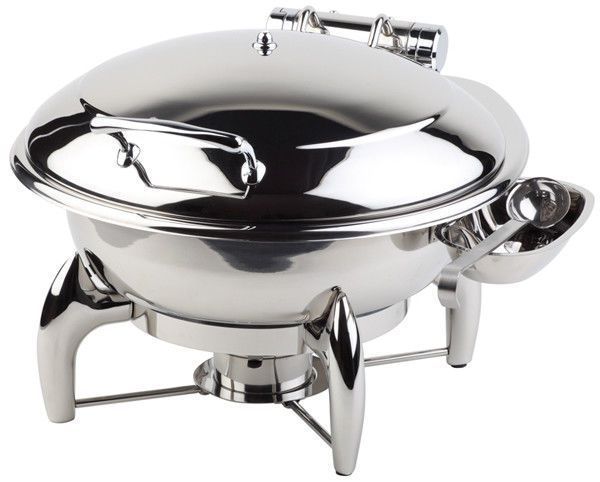 Chafing Dish Details Ausführung: hergestellt aus hochglanzpoliertem Edelstahl mit abnehmbarem hydraulischen Edelstahl-Deckel Sandwichboden sorgt für optimale Wärmeleitung für Induktionsplatten geeignet Set: Gestell + Wasserbecken + 1 runder Speisenbehälter + Löffelablage + 1 Brennpastenbehälter + 1 Metallrahmen für Induktionskochplatte Kapazität: 6,0 L Maße: Ø 38,5 cm - Höhe: 34,0 cm