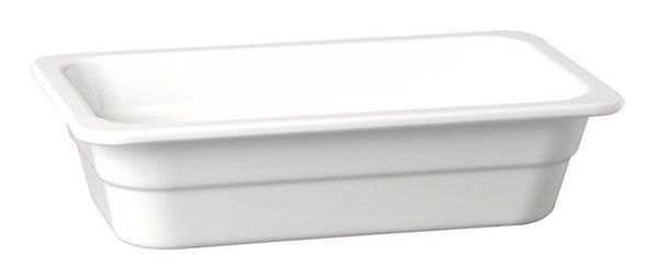 GN-Behälter aus Melamin Ausführung: hergestellt aus Melamin extrem bruchsicher glänzende und harte Oberfläche tiefkühlfest mit Stapelnocke stapelbar spülmaschinenfest Maße: 26,5 x 16,2 x 10,0 cm