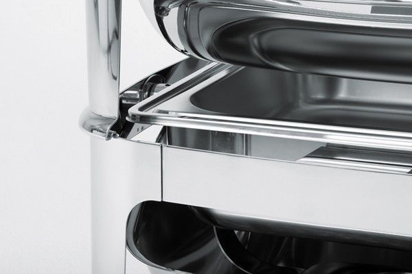 Chafing Dish Details Ausführung: hergestellt aus poliertem Edelstahl Speisenbehälter GN1/1 65 mm tief Rolltop-Deckel 90° und 180° klappbar Wasserbecken inkl. 2 Brennpastenbehälter Wechseln des GN-Behälters ohne Abnehmen des Deckels (kein Kondenswasser-Rücklaufsystem) Kapazität: 9,0 L stapelbar spülmaschinengeeignet Maße: 67,0 x 47,0 x45,0 cm