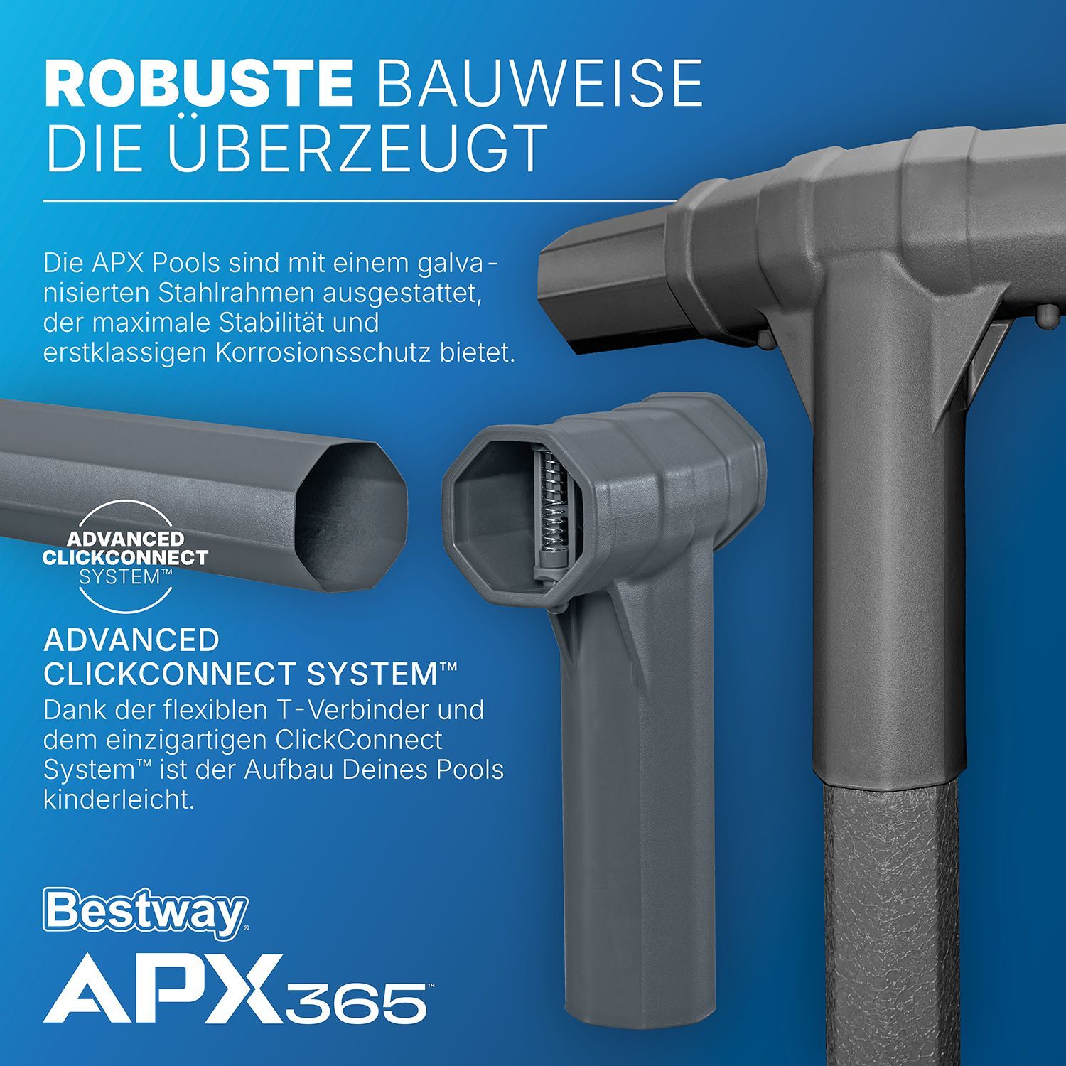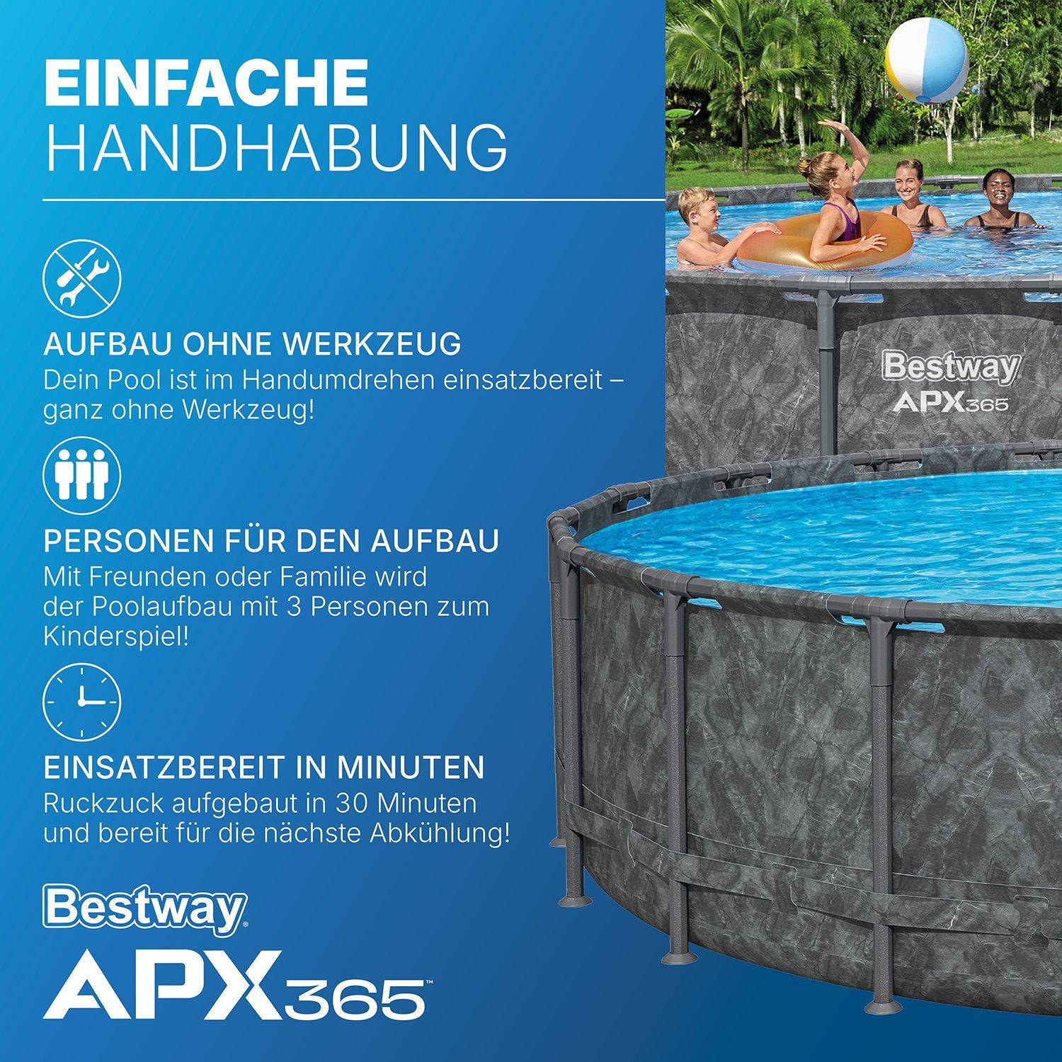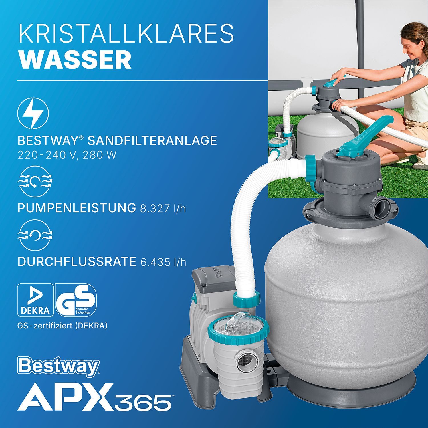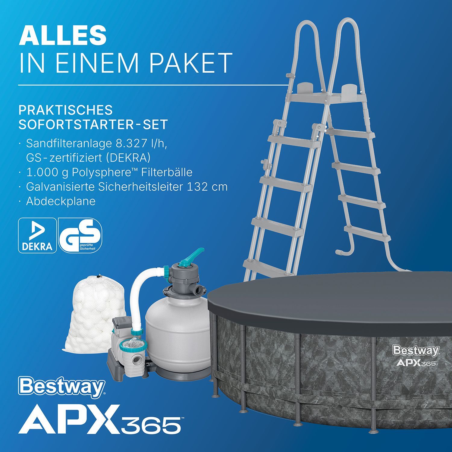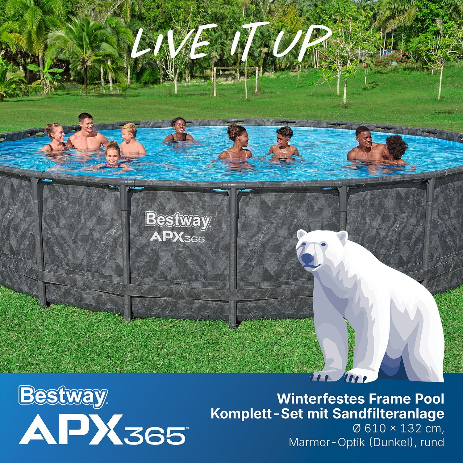 Bestway. APX365™ Winterfestes Frame Pool Komplett-Set mit Sandfilteranlage Ø 610 x 132 cm,