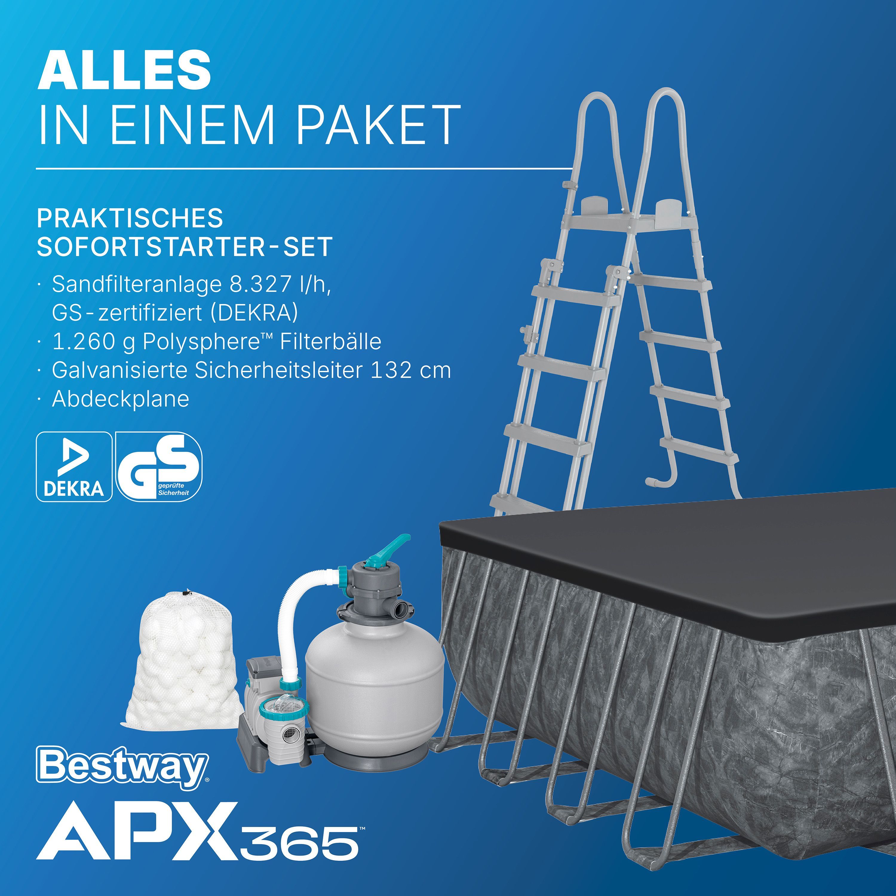 Bestway. APX365™ Winterfestes Frame Pool Komplett-Set mit Sandfilteranlage 956 x 488 x 132