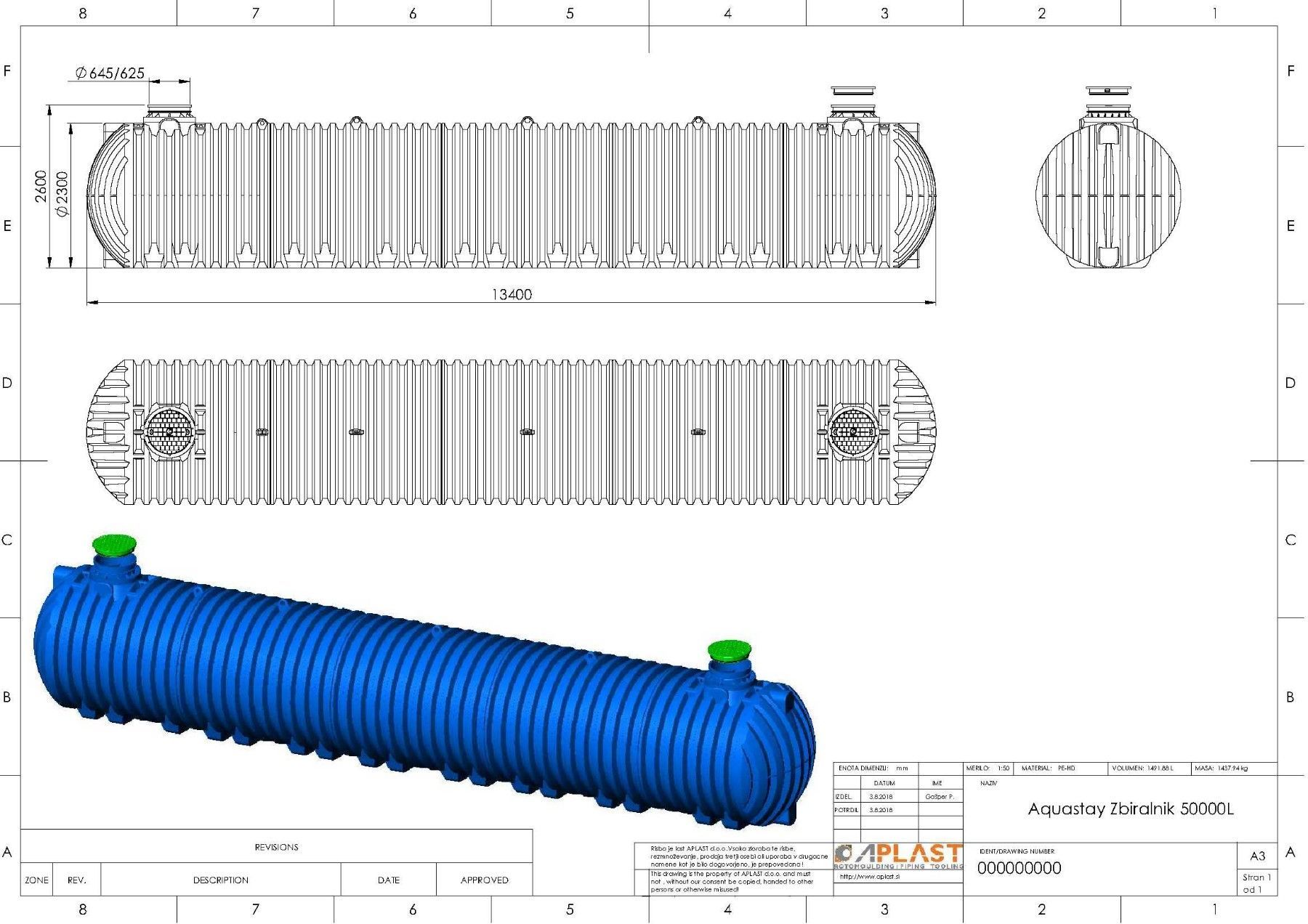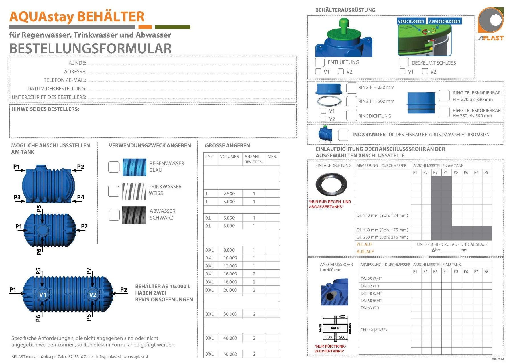 Aqua Plast 50000 Liter, Regenwasser, Abwasser Tank Bei Bestellung mit Anschlüssen bitte die Positionen (P1, P2 etc.) angeben. Siehe angehängte Zeichnung! Eigenschaften: hohe Qualität Ökonomisch - Reduzierung von Wasserverbrauch robuste Konstruktion aufgrund der rotierenden Fertigung sind Tanks bis 1