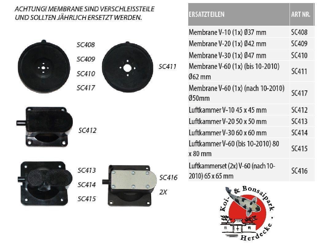 Aquaforte Ersatzmembranen V Serie Luftpumpe Luftkammern