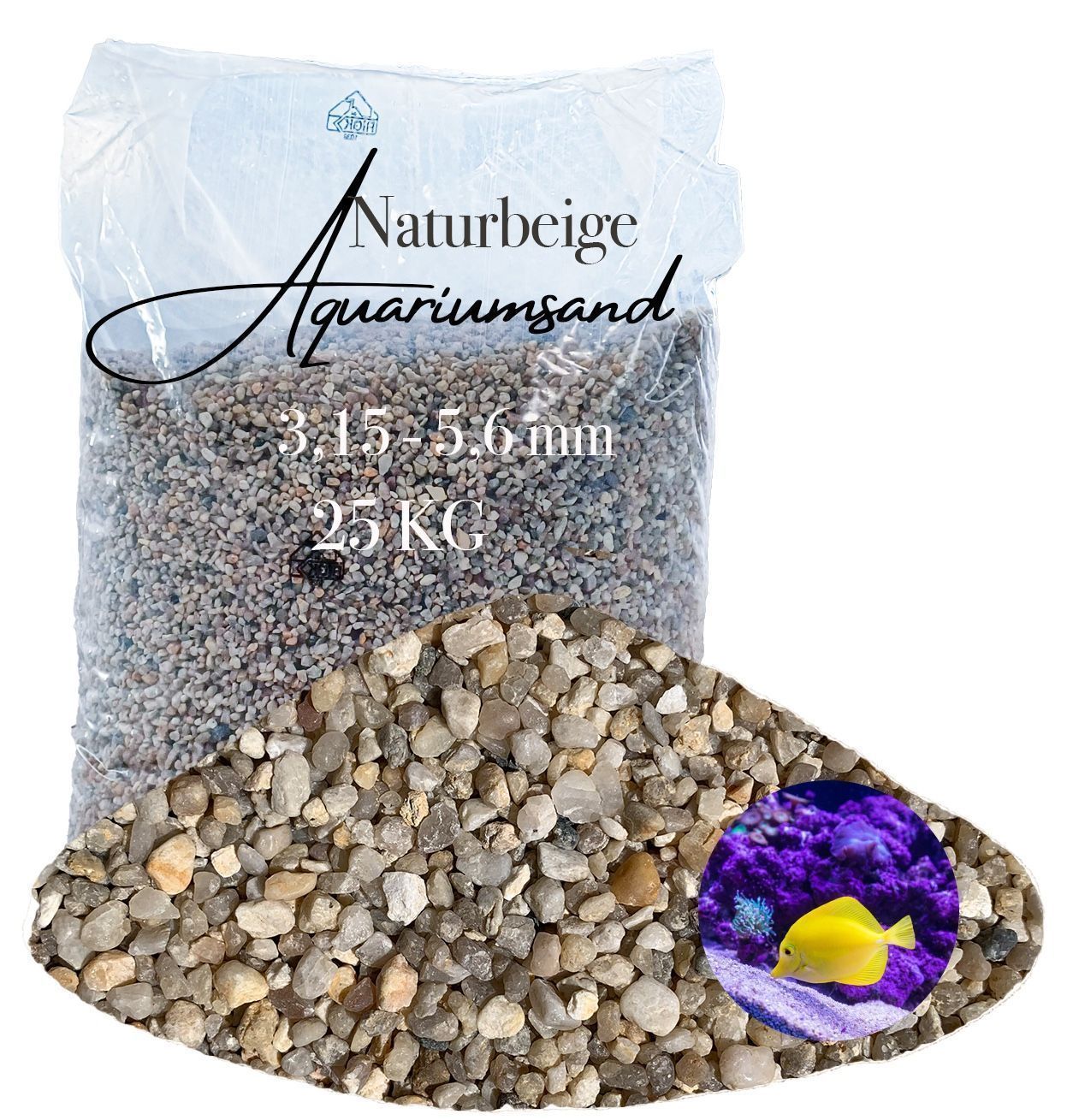 Aquagran® Aquariumsand Aquarienkies beige 25 kg Aquariensand Aquariumkies 3,15-5,6 mm