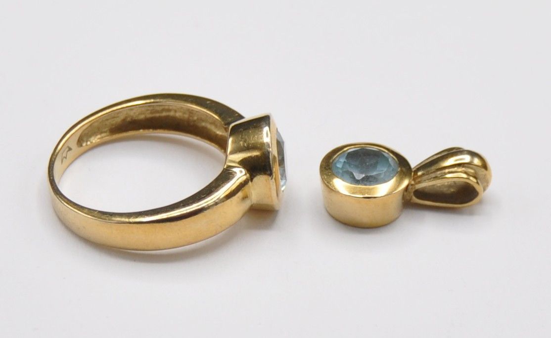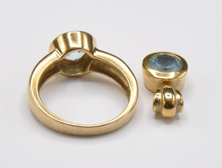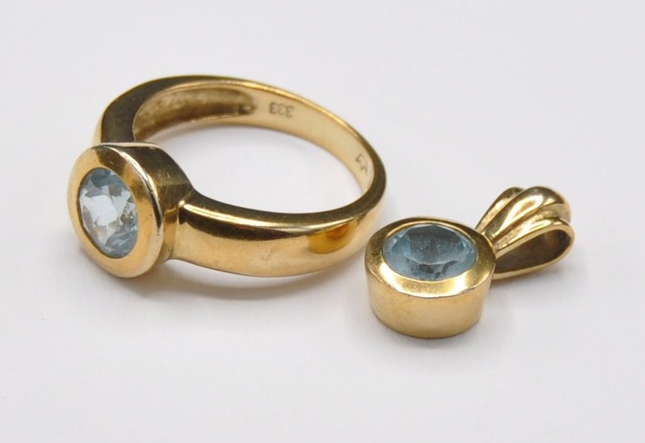 Aquamarin Topas Set Anhänger Ring 333 Gold Neu wertig massiv