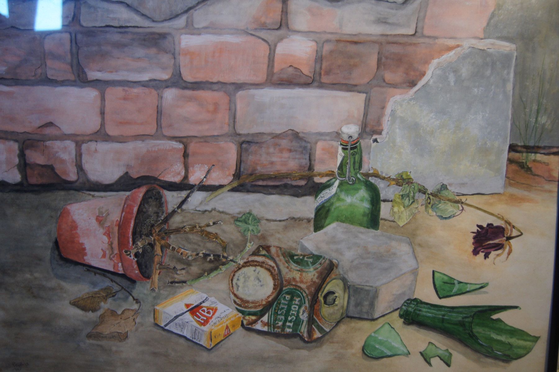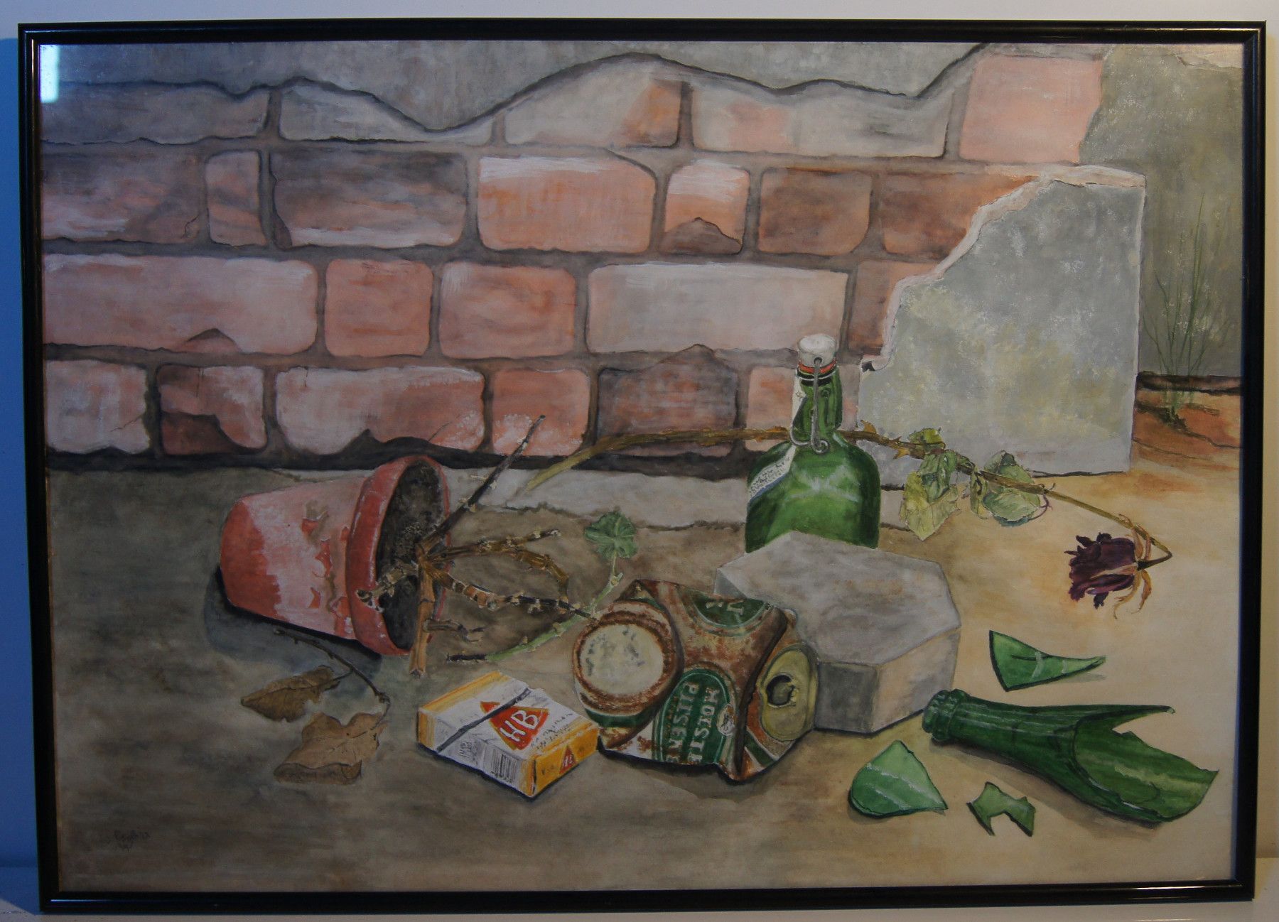 Original-Aquarell von 1995. Signiert: Waltraut Liebisch (Hamburg). Motiv: Müll . Im Rahmen. Maße: Rahmen H 51, B 71 cm. Antikes am Deich - Inh: Oliver Kipp-Trense