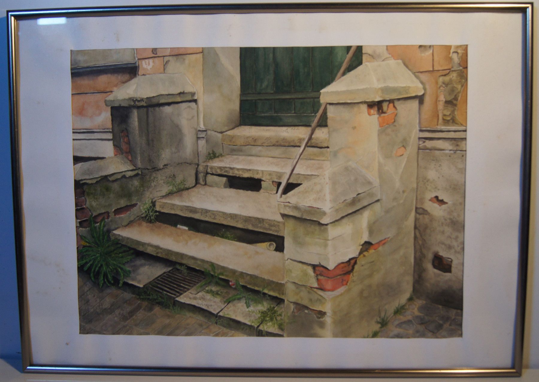 Original-Aquarell von 1995. Signiert: Waltraut Liebisch (Hamburg). Motiv: Treppe . Im Rahmen. Maße: Rahmen H 51, B 71 cm. Antikes am Deich - Inh: Oliver Kipp-Trense