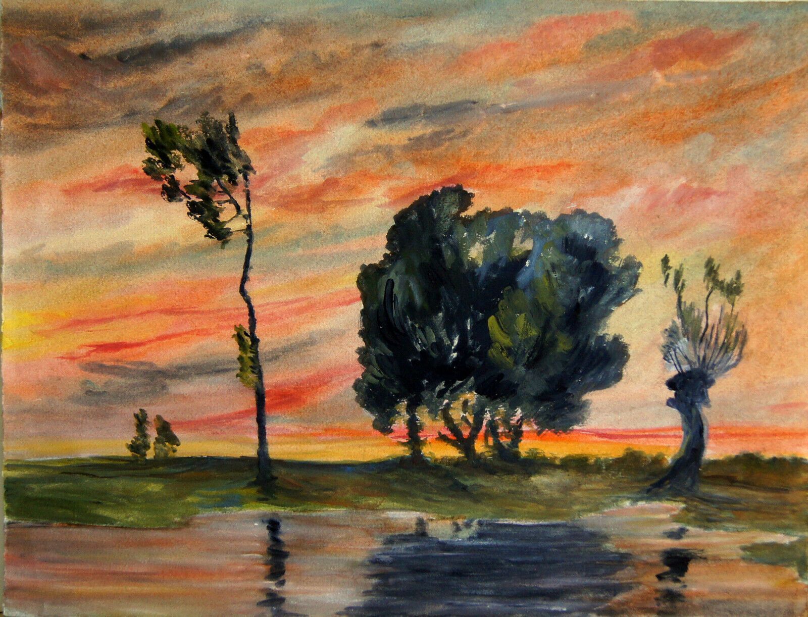 Aquarell Peter Schadwinkel um 1975 Abendrot /2231