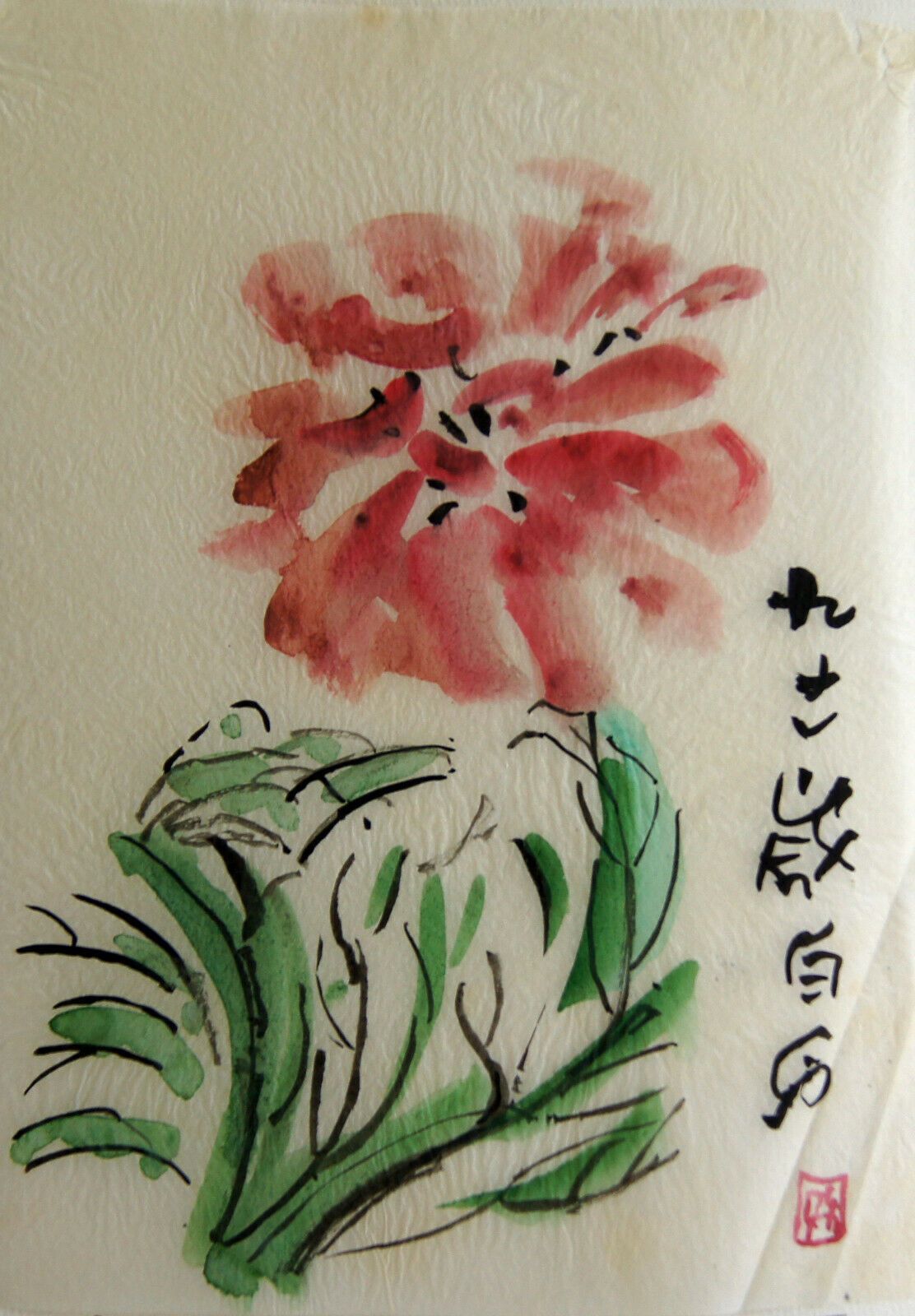 Aquarell Peter Schadwinkel um 1975 Chin, Blume /2229