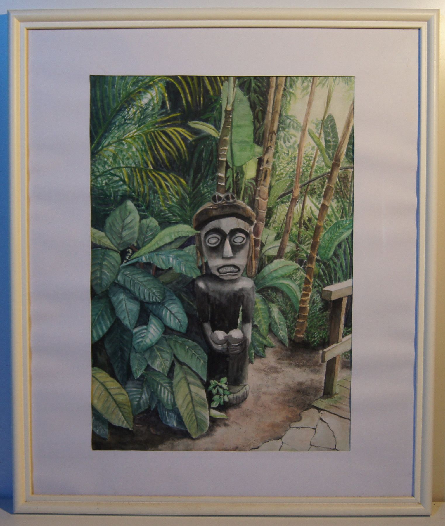 Original-Aquarell um 2000. Unsigniert, aber mit Zertifikat: Waltraut Liebisch (Hamburg). Motiv: Urwald . Im Rahmen. Maße: Rahmen H 64, B 54 cm. Antikes am Deich - Inh: Oliver Kipp-Trense