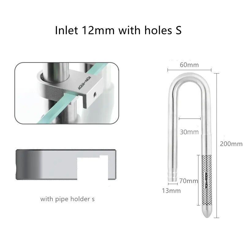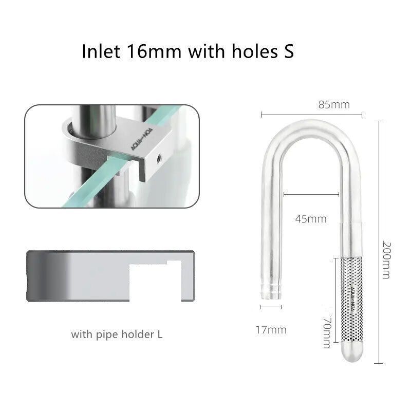 Verleihen Sie Ihrem Aquarium Stil und Effizienz mit unserem Stainless Steel Mini Set. Der 15 cm lange Auslauf gewährleistet eine gleichmäßige Wasserversorgung, während der 20 cm lange Einlauf Verwirbelungen minimiert. Die neue Halterung mit einer Aluminiumlegierung bietet eine sichere Befestigung un