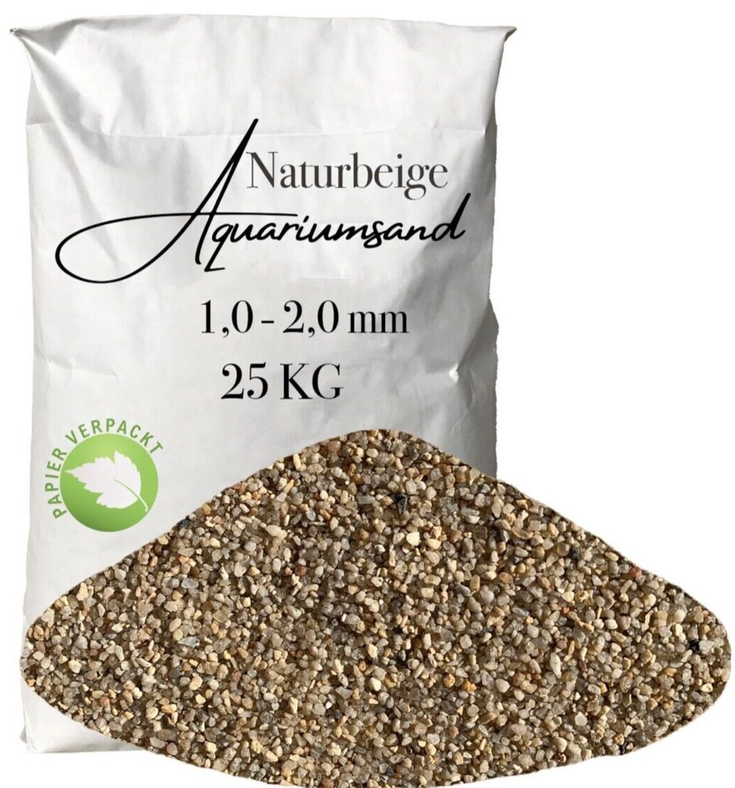 Aquariumsand 1,0-2,0 mm - 25 kg naturbelassener Bodengrund für bepflanzte Becken & kl