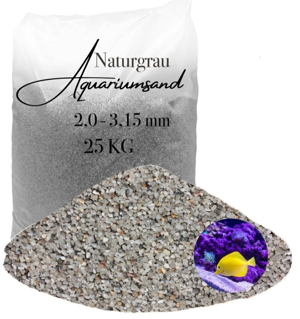 Aquariumsand Naturgrau 2,0-3,15 mm - 25 kg - Grobe Körnung für große Aquarien & Techn