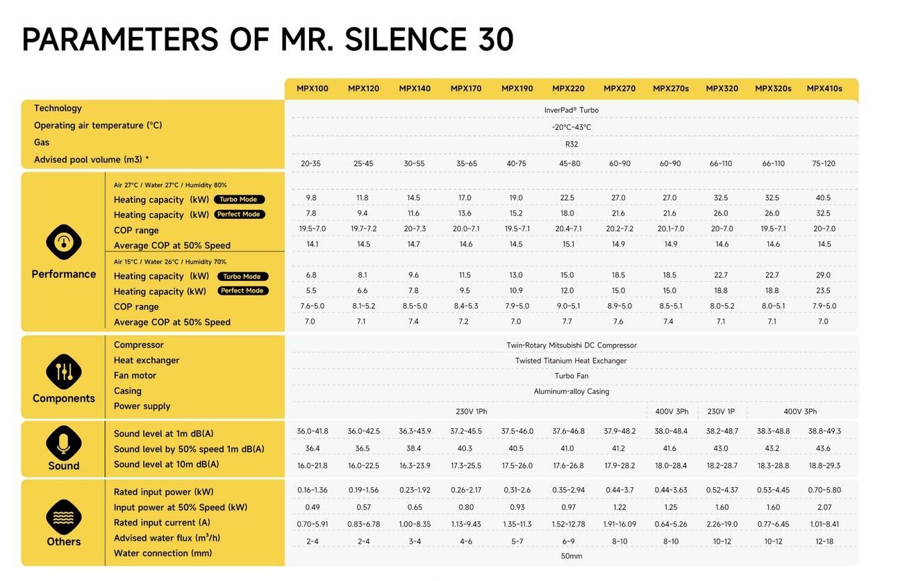Die Aquark MR. SILENCE 30 Wärmepumpe bietet leisen Betrieb mit nur 40 dB(A), eine beeindruckende Energieeffizienz mit COP 22 und modernes Design. Perfekt für Ihren Pool!