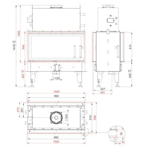 Der Twin 10 Aquatic ist das leistungsstärkste Modell der Twin-Aquatic-Serie – wassergeführter Tunnel-Kamineinsatz mit 20kW und zwei großen Sichtscheiben
