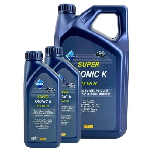 Aral SuperTronic K 5W-30 5+2 Liter Aral SuperTronic K 5W-30 ist ein modernes PKW Hochleistungs-Motorenöl in Aral-Synthese-Technologie. Dieaschearme Formulierung verlängert die Lebensdauer des Partikelfilters durch eine verminderte Konzentration anaschebildenden Partikeln im Abgas. Aral SuperTronic K