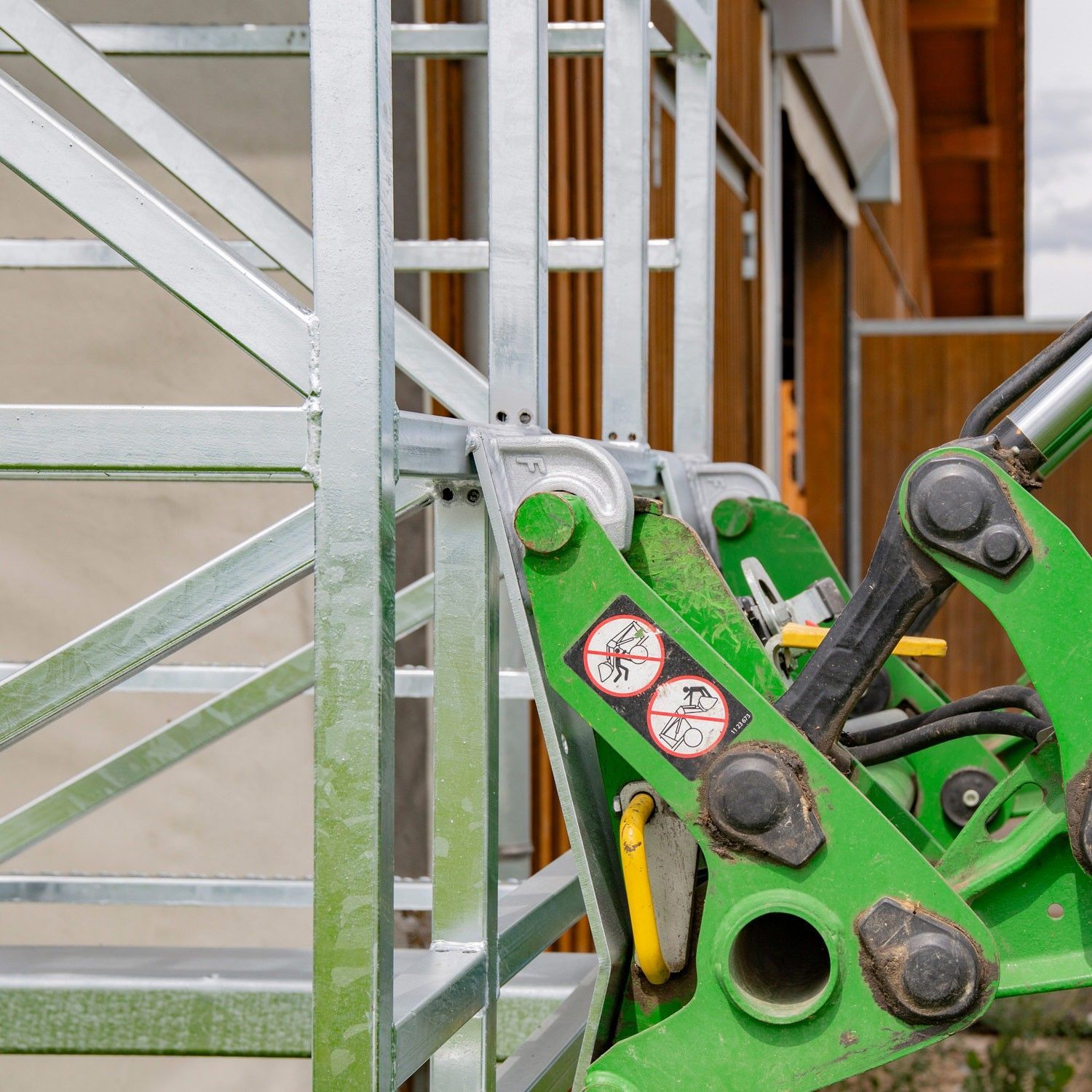 Salzmann Landtechnik Werksvertretung Arbeitsbühne »Maxi« Anbau an Euronorm Der Profi im Arbeitsbühnen-Sortiment bietet eine Erhöhung von ca. 1,40 Meter - für sicheres und bequemes Arbeiten an besonders hoch gelegenen Stellen! Unsere feuerverzinkten Arbeitsbühnen bieten vielfältige Einsat