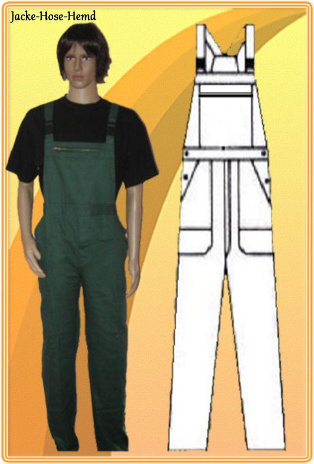Arbeitslatzhosen Latzhose Grün in Normal-, Bauch-, Kurz- und Schlankgröße NEU