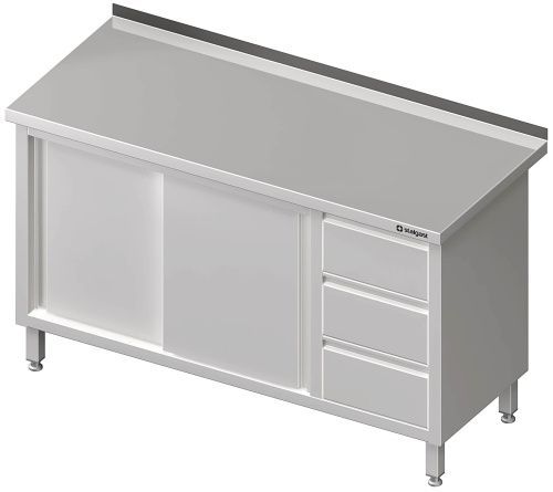 Arbeitsschrank mit Schiebetüren, mit 3er Schubladenblock, ohne Aufkantung, verschweiß