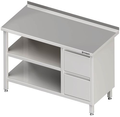 Arbeitstisch mit Grund- und Zwischenboden, mit 2er Schubladenblock, mit Aufkantung, v