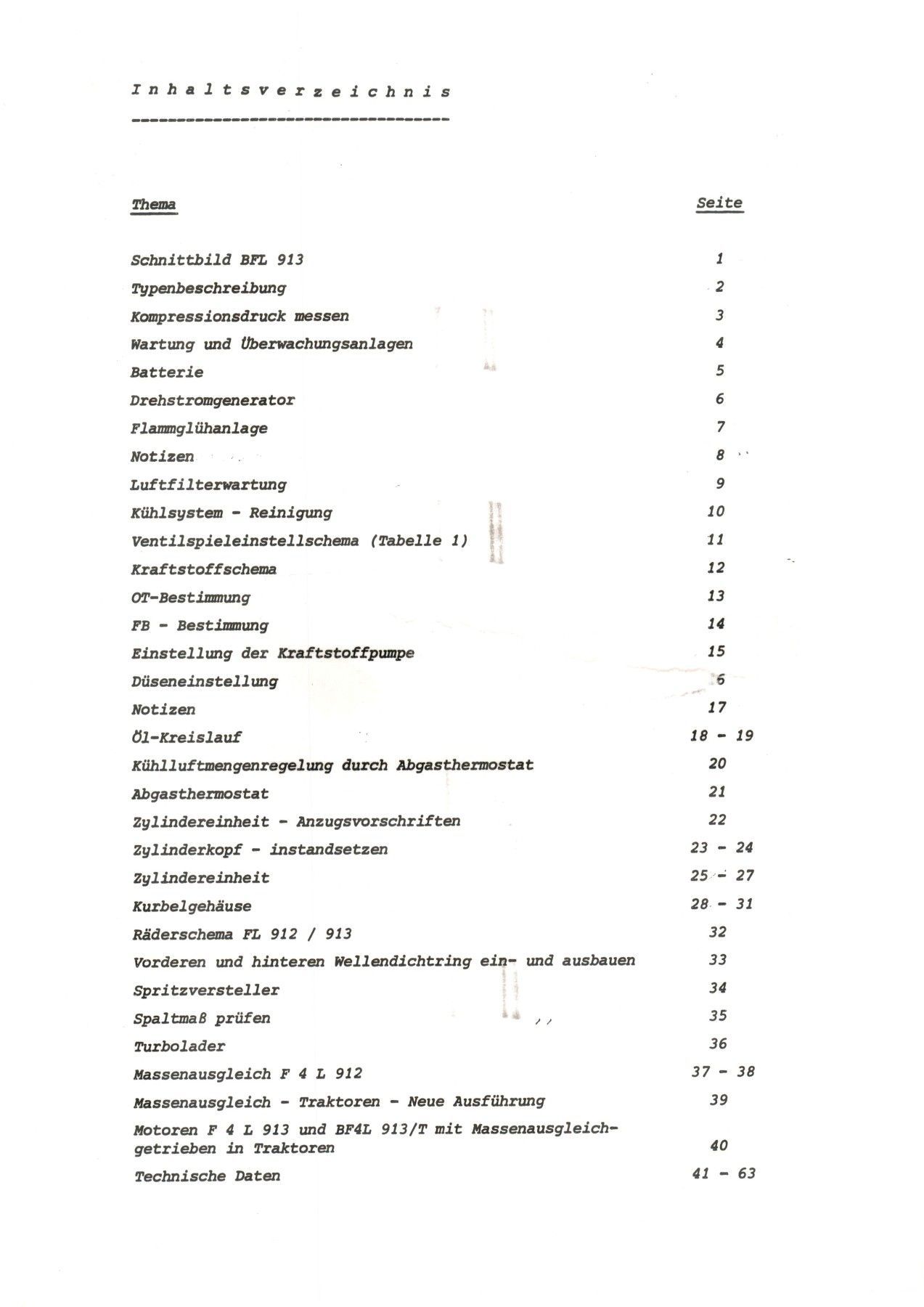 Arbeitsunterlage KHD Kundendienstschule KHD Deutz MotorenFL 911- 912 -W913