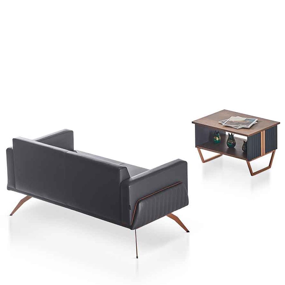 Arbeitszimmer-Set 2tlg 2-Sitzer mit Couchtisch Grau Braun Zweifarbig