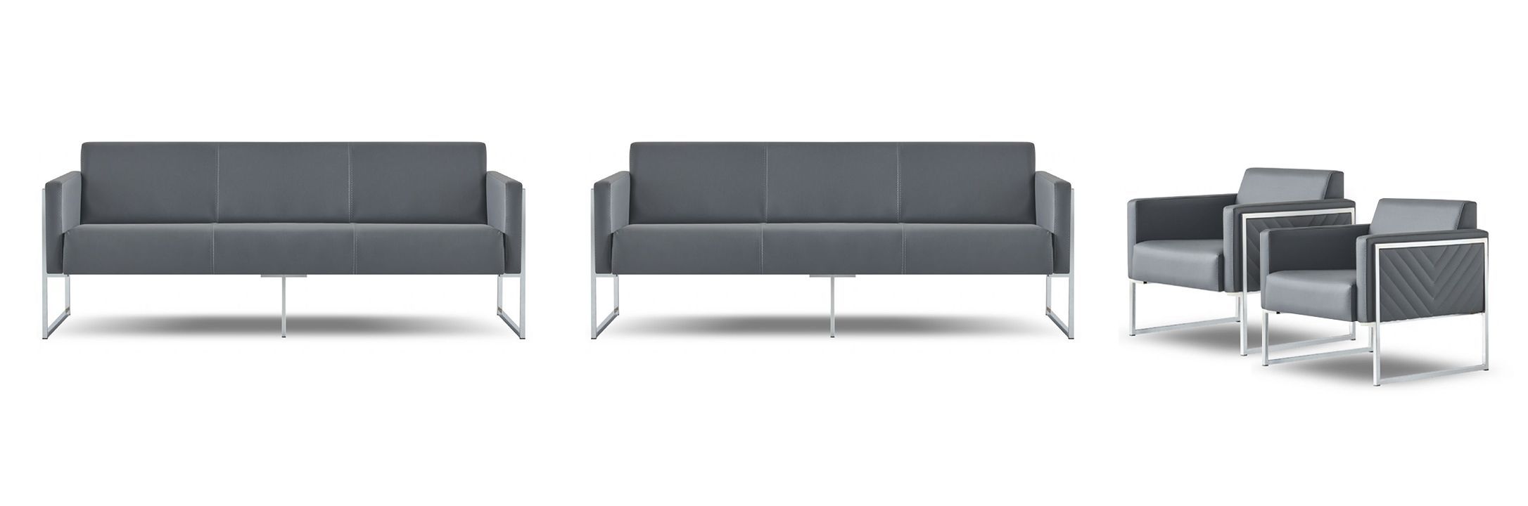 Arbeitszimmer-Set 4tlg 2x 3-Sitzer Sofas 2x Sessel Grau Enifarbig Modern