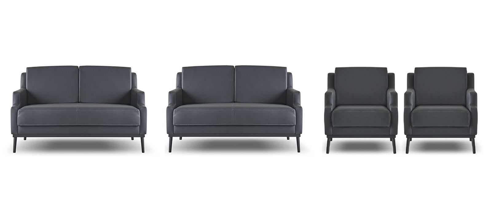 Arbeitszimmer-Set 4tlg 2x S-Sitzer 2x Sessel Dunkelgrau Einfarbig Modern