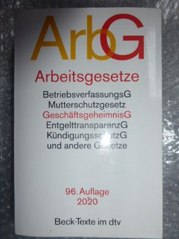 ArbG Arbeitsgesetze 96. Auflage 2020, Becker Text im dtv