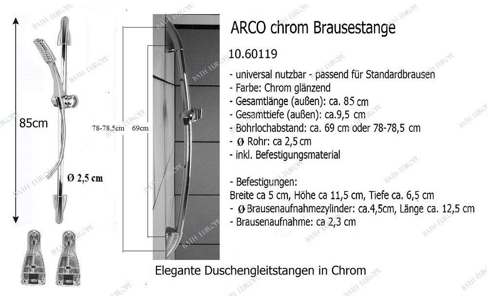 Achtung: es handelt sich um Artikel mit beschädigte Originalverpackung oder eventuell ohne Originalverpackung! Alle Artikel sind neu und voll funktionsfähig. Reduziert!” PRODUKTBESCHREIBUNG: Arco Chrom Brausestange Duschgleitstange 85cm. Brausenhalter Stufenlos Verstellbar. Metal Verchromt. Sc... Mehr