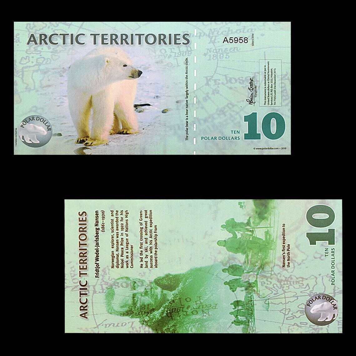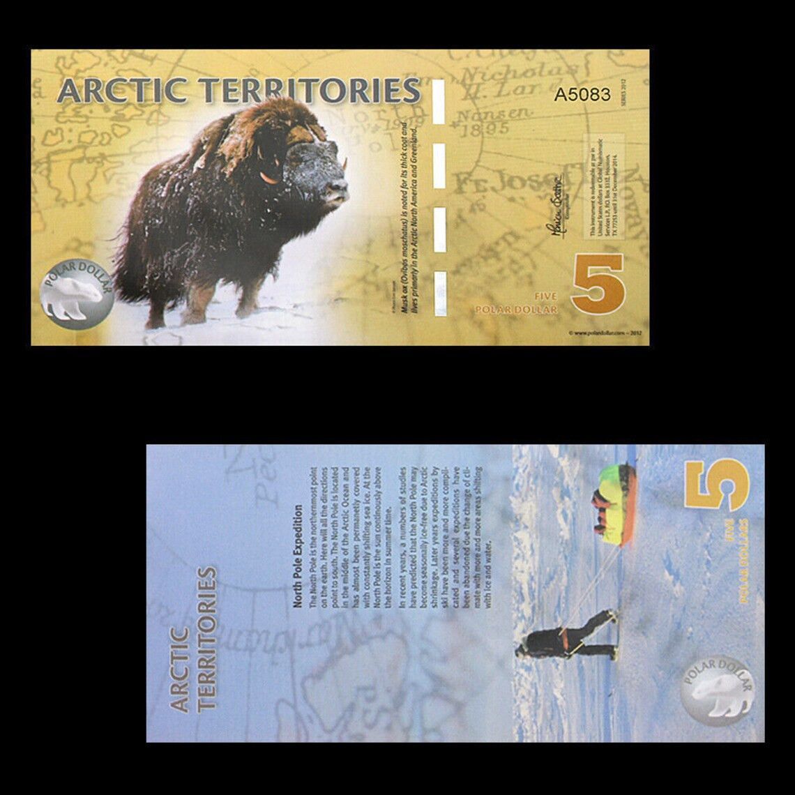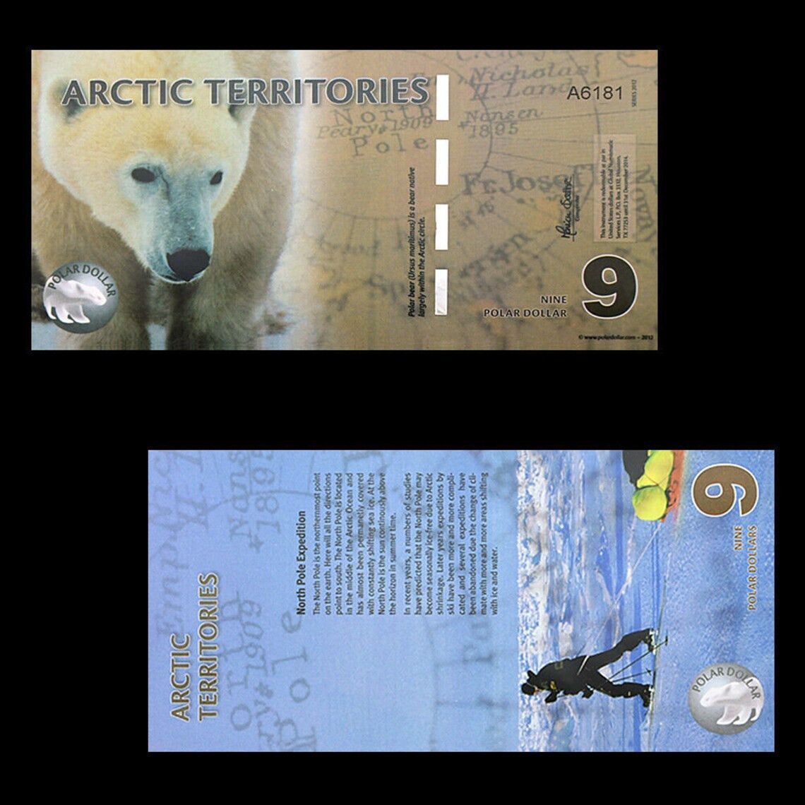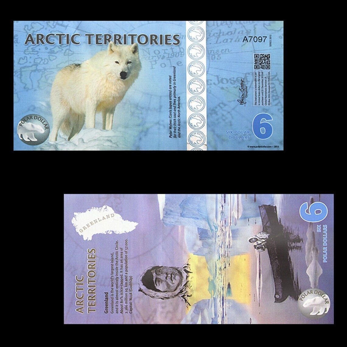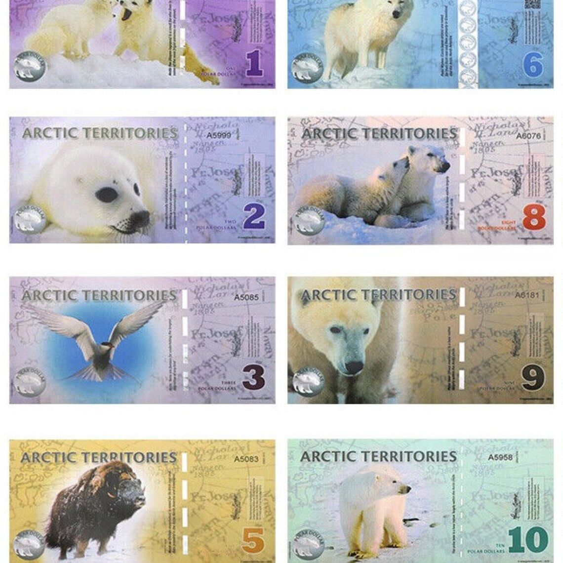 Arctic-Territories Banknoten 1 bis 25 Dollar Papiergeldscheine (AB100)