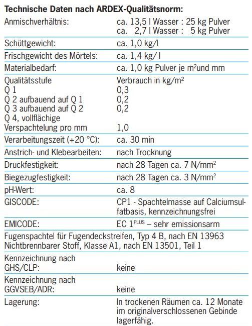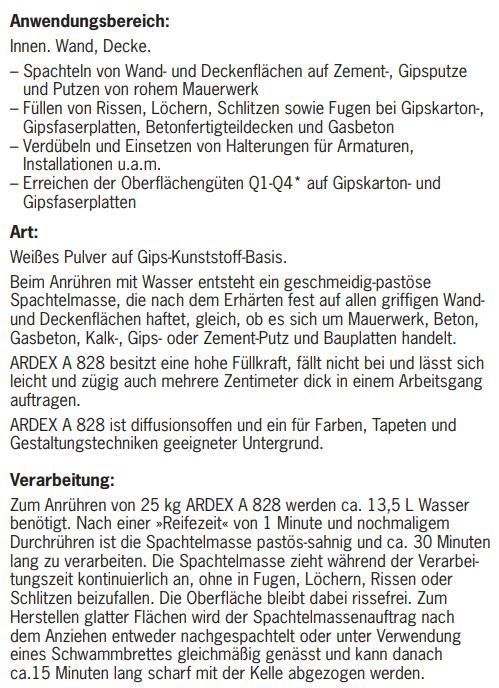 ARDEX A 828 Wandspachtel 5kg Gips-Wandfüller Spachtelmasse Ardumur Gipsspachtel